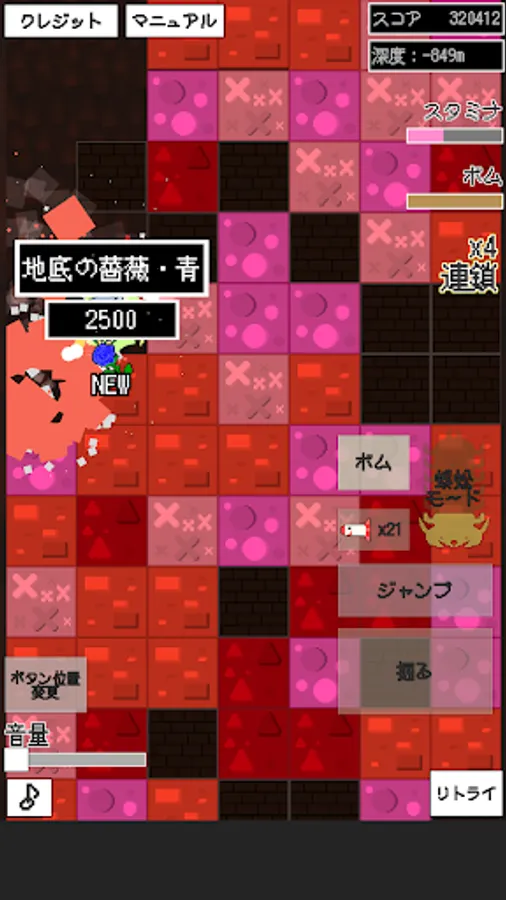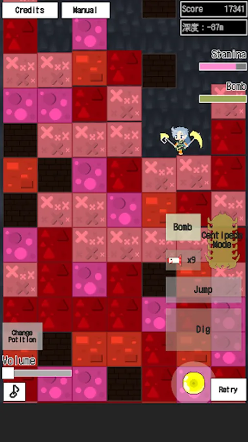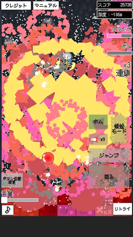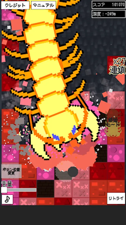 An endless game, in which the giant centipede Himemushi Momoyo digs the mysterious red blocks.