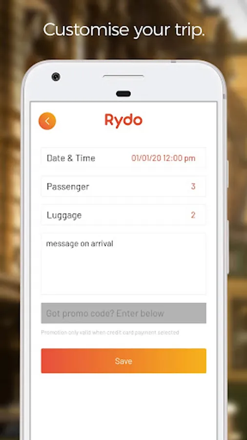 Using Rydo you can book a taxi right now, or conveniently prebook a taxi for a later date