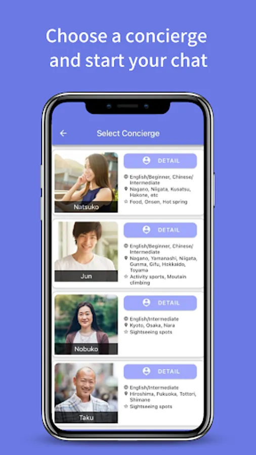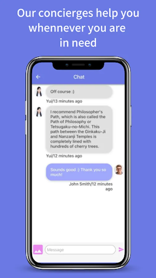 If you need to ask a local person a question that you can't find on the Internet, or if you don't know how to order at a Japan restaurant, you can easily ask a question via chat.