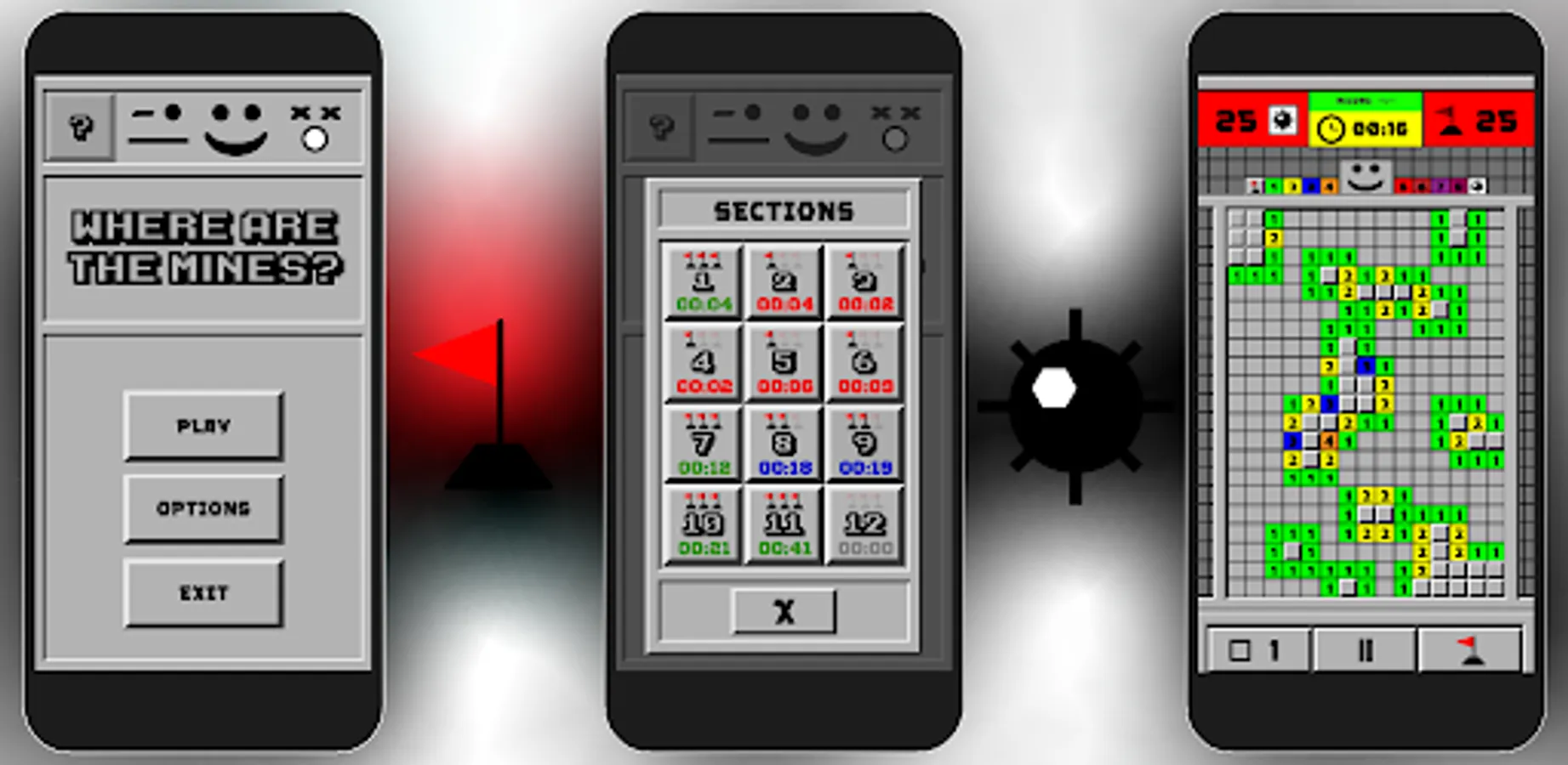 Find mines in 315 square fields. Put a flag and don't forget where the mine is. When you find all the mines, victory is yours!!!