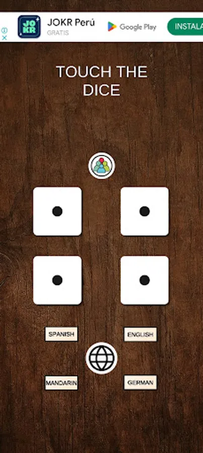 Pero he aquí la solución a nuestros problemas, Una aplicación que te dará dados y puedes escoger el numero de dados que quieras para tus compañeros. Esta app podrás cambiar el idioma entre Español, Inglés, Mandarín y Alemán.