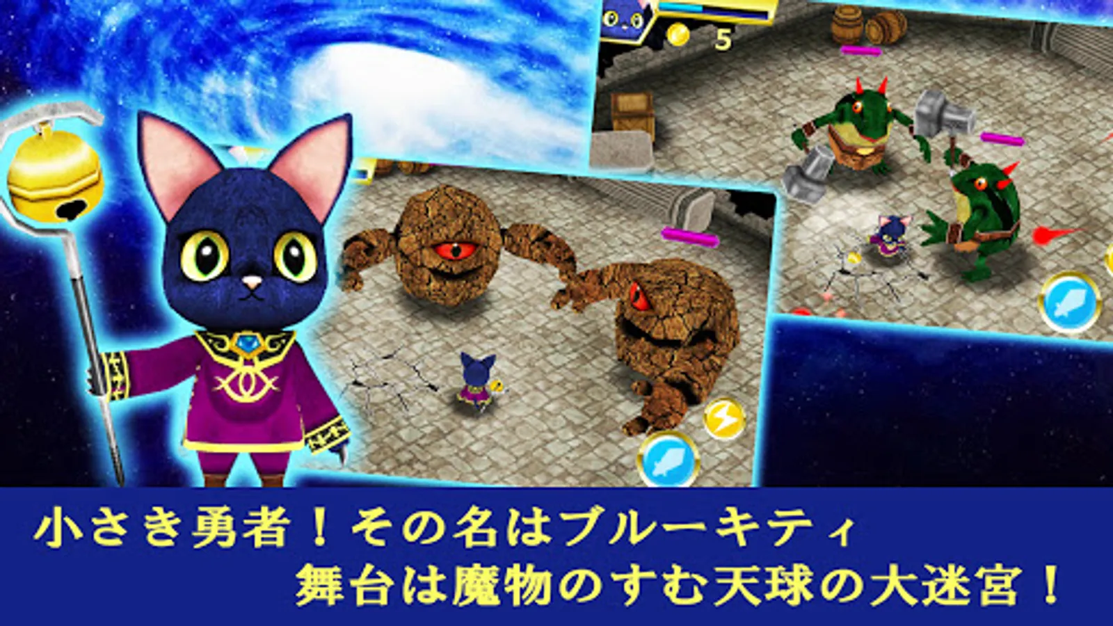 This is an action game in which the brave kitten, Blue Kitty, adventures through a labyrinth.