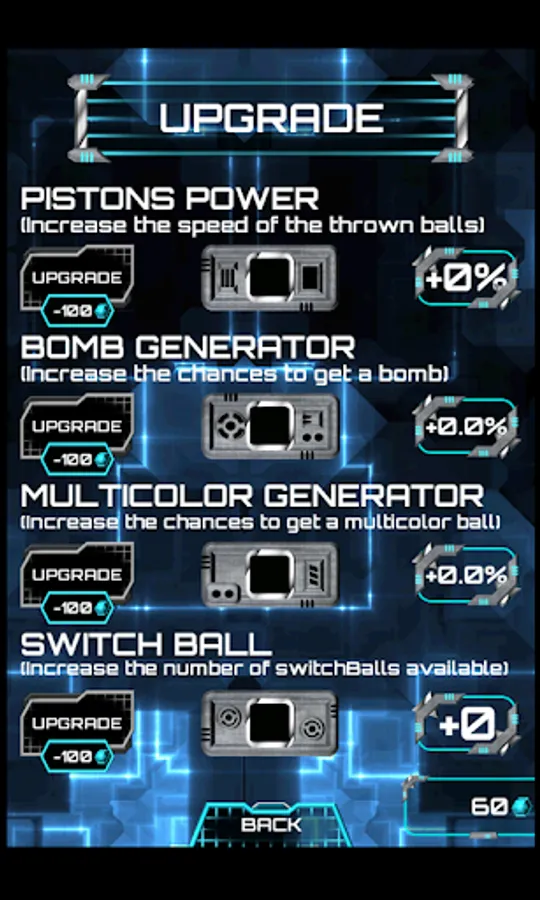 An other element which can help you making points is the possibility to upgrade your launcher with the credits that you will earn every time you clear a level and with some Bonus.