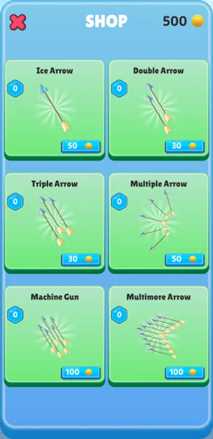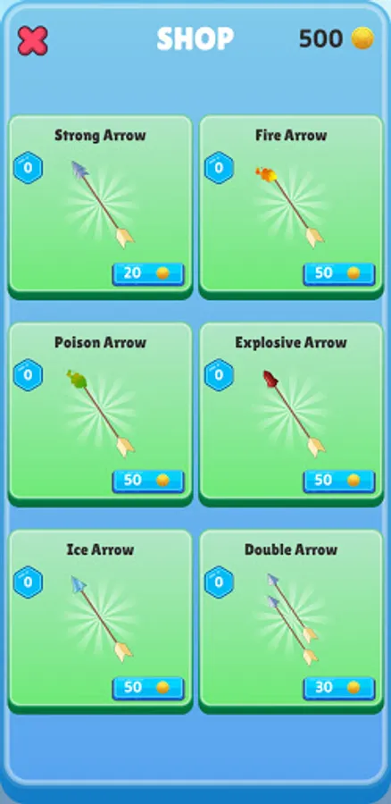 Here you can different power enabled arrows from the shop to gain your victory over the enemy.