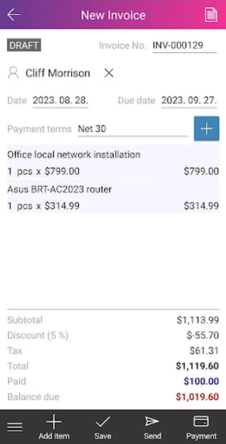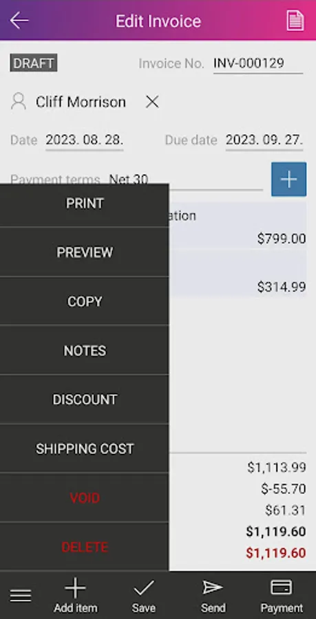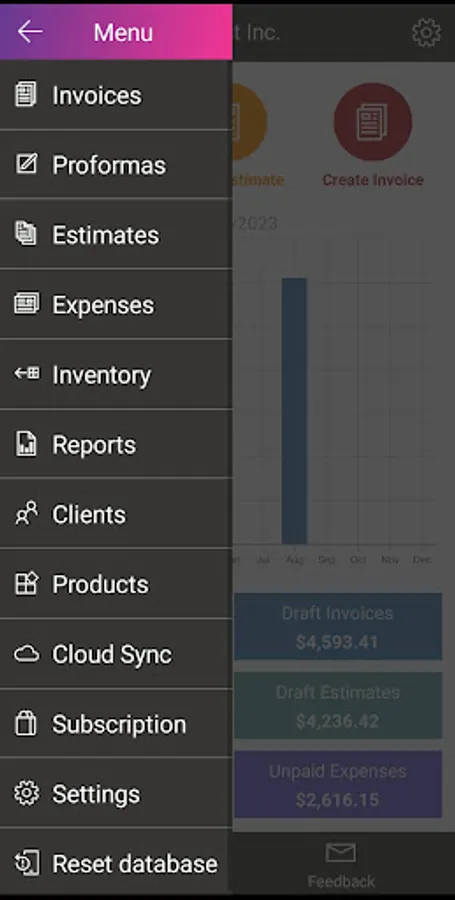 Easy-to-use app for small business owners, contractors, and self-employers to create professional invoices, estimates/quotes with product management and expense tracking.