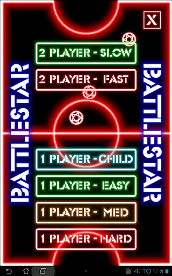 Challenge your friends to a game of BattleStar Glow Hockey! Play in Classic Mode or try the New Battle Mode!