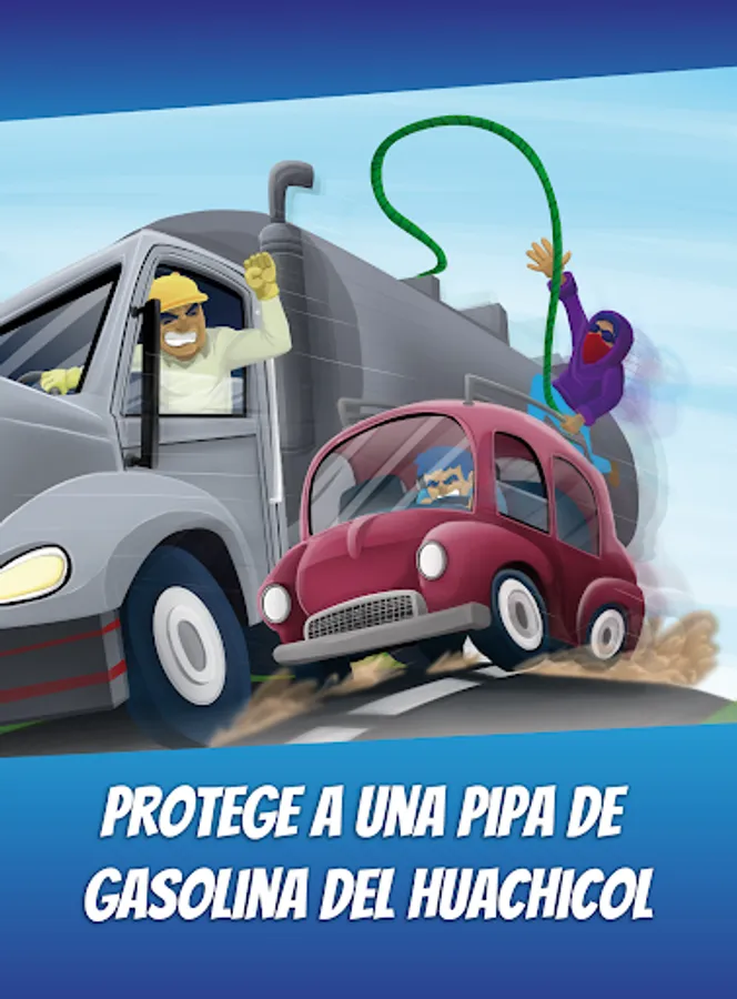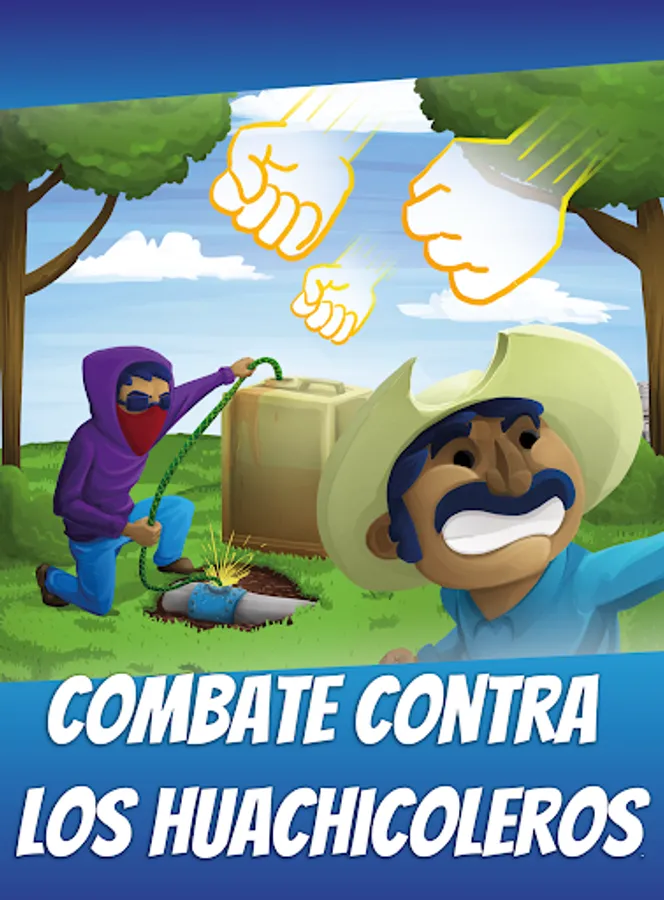 Defeat the huachicoleros who want to leave us without oil in these three fun mini-games, in the first one they avoid stealing the fuel from the pipe so that it reaches its destination completely, in the second stop the thieves before they make holes where they can steal the oil and in the third swim to the depths of the sea to open the secret valve and can pass the healthy oil and safe from the hauchicoleros, become the hero we all need!