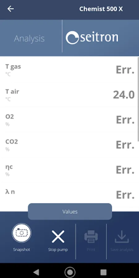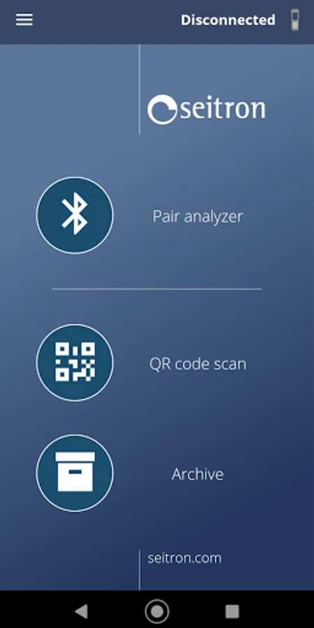 Seitron Smart Analysis allows you to interact with your Seitron mbustion analyzer through the Bluetooth Low Energy communication protocol (Bluetooth 4.2 or greater).