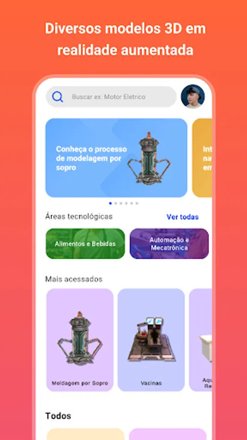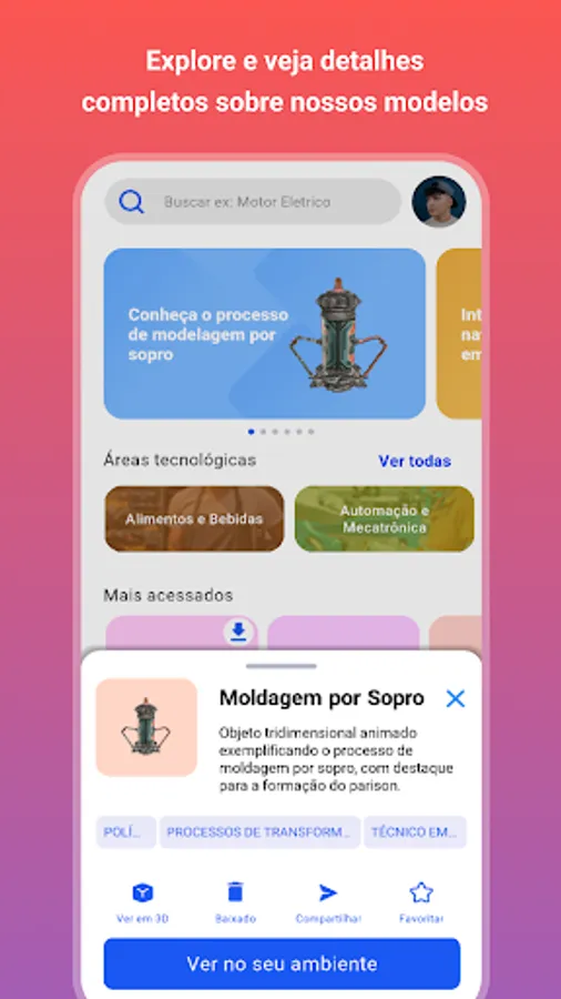 Use SENAI Space to interact with industrial machines, civil construction, information technology, chemistry, among other areas. You will be able to visualize the objects in your environment and also interact, which will make your learning better and more fun!