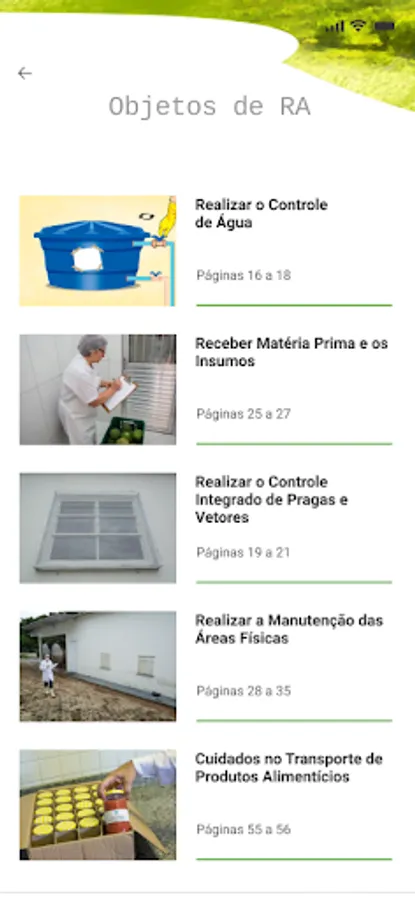 With SENAR's Augmented Reality (AR) Application, you can learn about topics related to agriculture in a much more interactive and immersive way. Initially, the App has reality objects related to the agro-industry production chain, addressing good practices in food manufacturing. Soon we will have many more augmented reality objects.