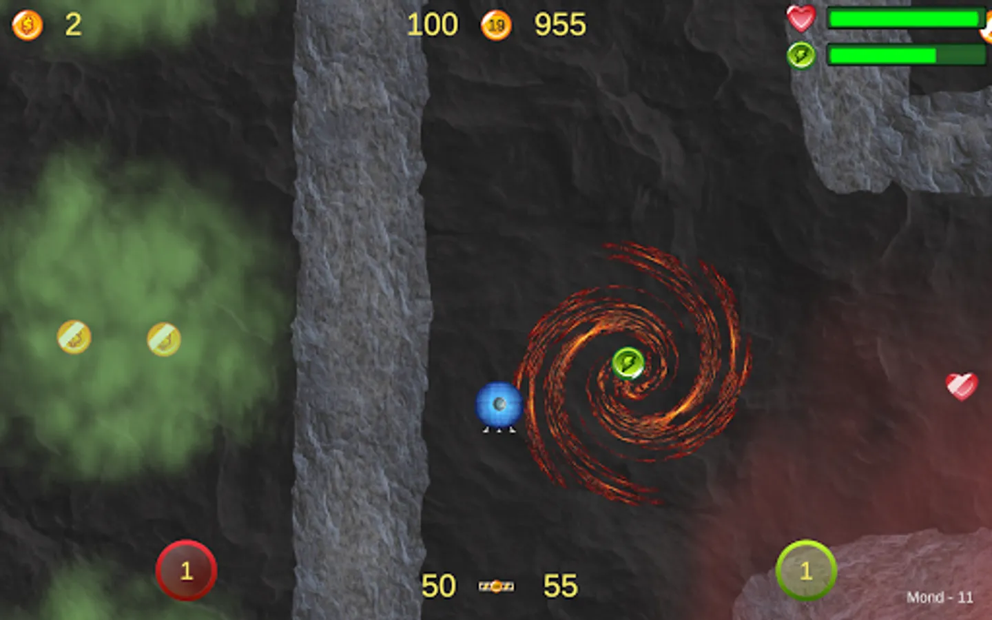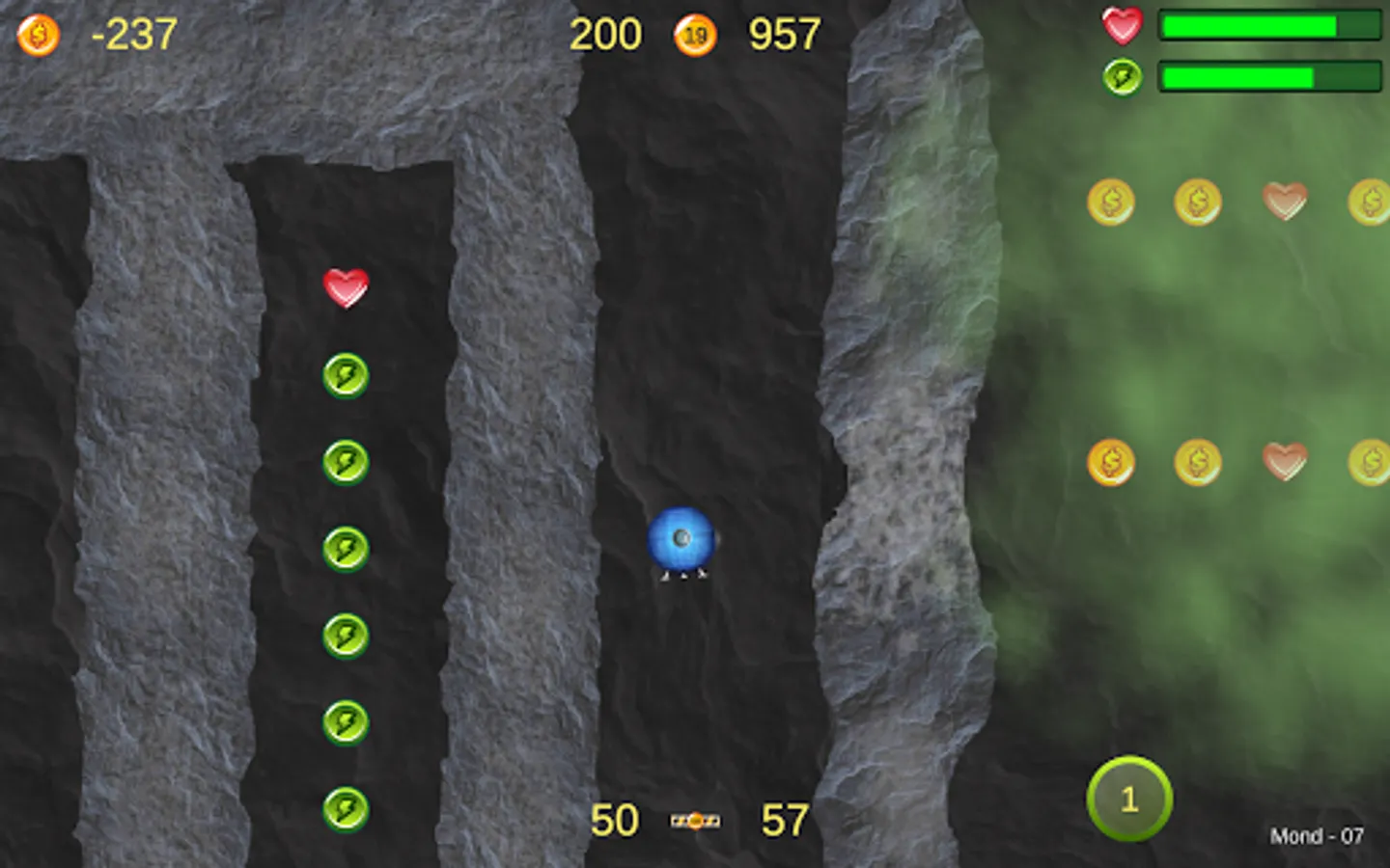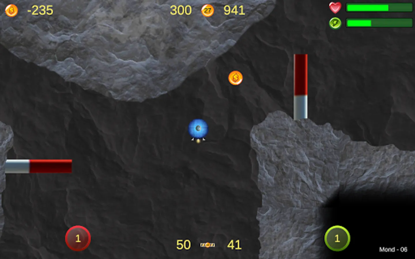 Fly your lander, spaceship or rocket into the caves of moons and planets. Collect coins for arming the lander and overcome obstacles such as deadly fog and mines. Your skill determines how far you make it.