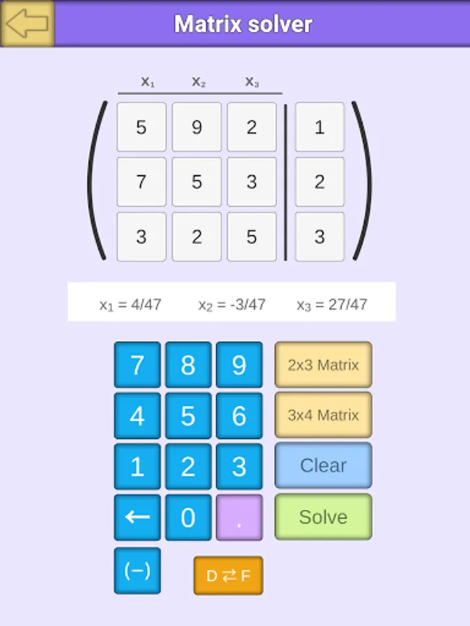 You need to solve a system of linear equations, find a function? Just use the Matrix solver, which will solve 2x3 and 3x4 Matrices for you.