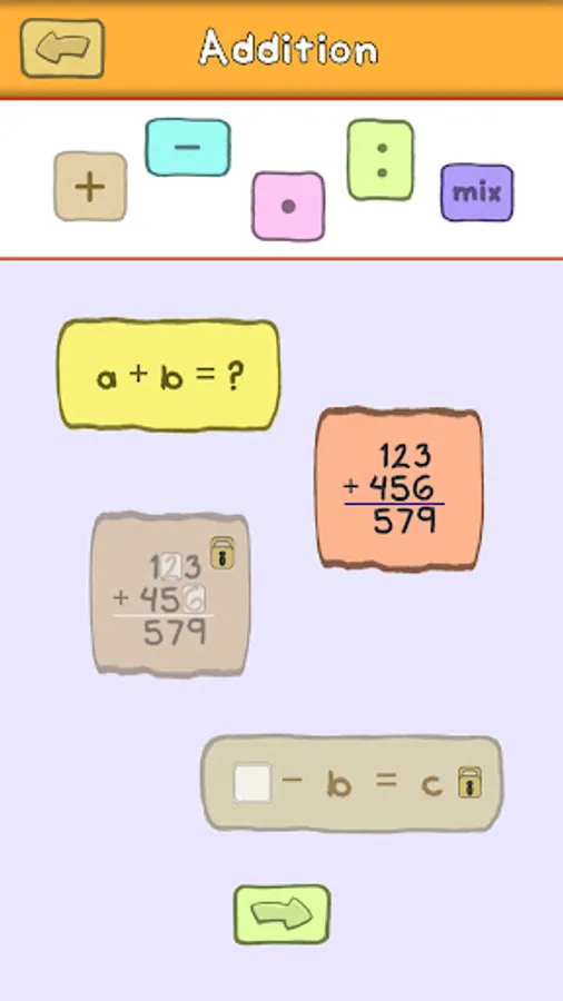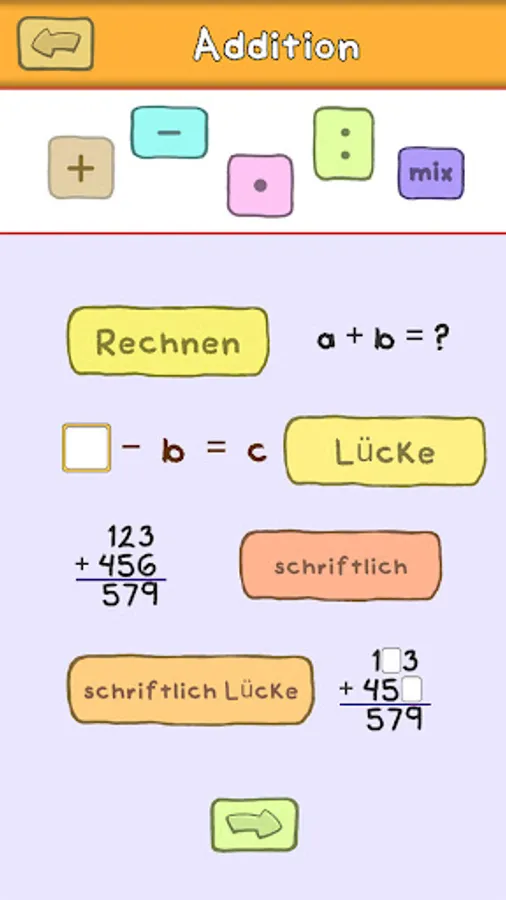 Addition, subtraction, multiplication, division, mental arithmetic, gap tasks, written arithmetic, written arithmetic with gaps, arithmetic wall, arithmetic table, arithmetic snake, multiplication table, half-written, counting with times, remainder, dot-before-dash