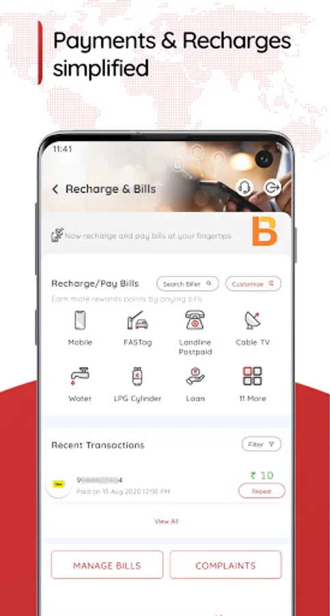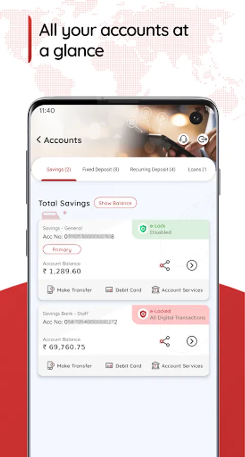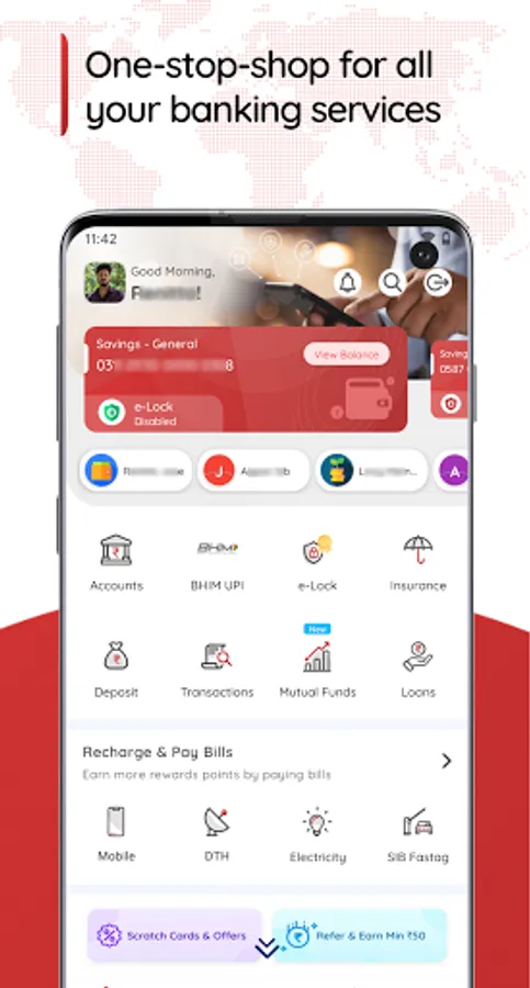 2. View Account summary, Mini-Statement and transaction details of all your savings and Current accounts.