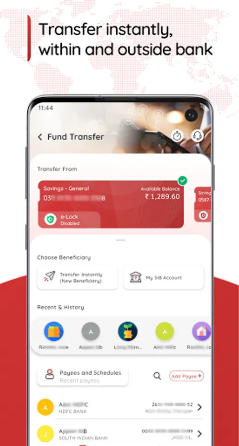 4. Make immediate or scheduled fund transfers to South Indian bank and other bank customers through NEFT facility.