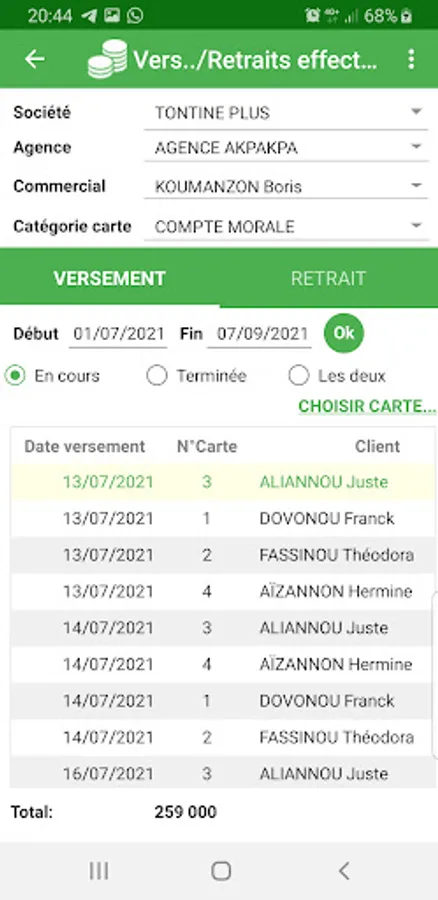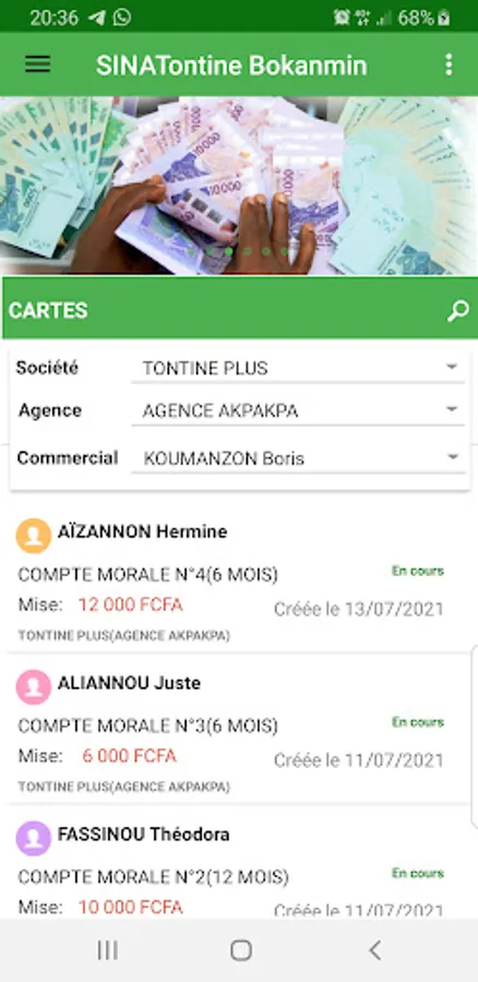 SINACOLLECTE Mobile is an application dedicated to savings. It allows you to manage your customers, sales representatives, cards, etc.