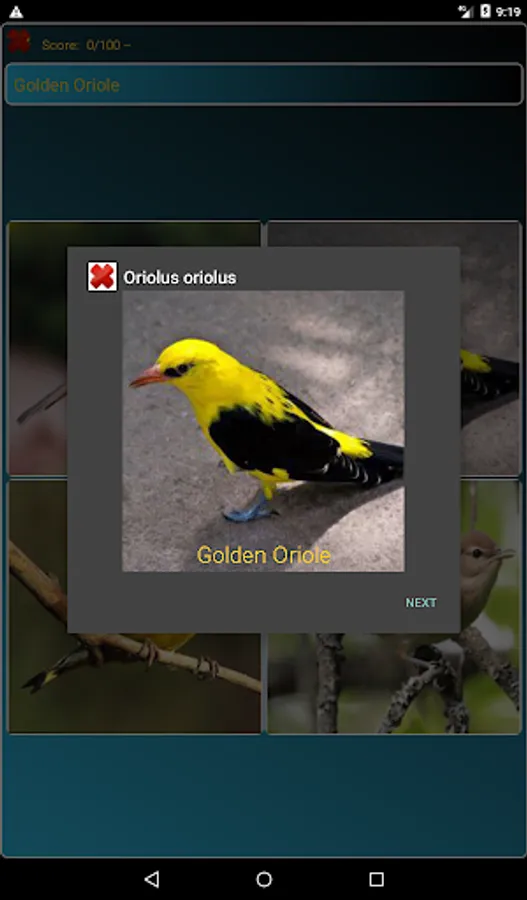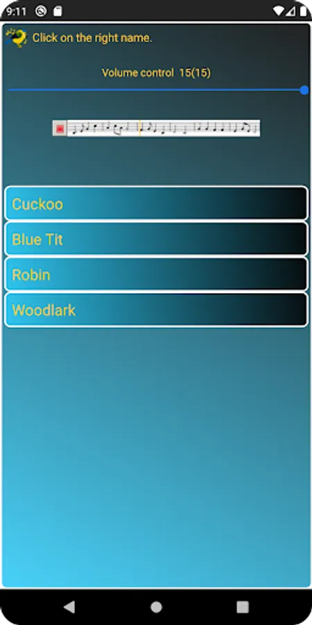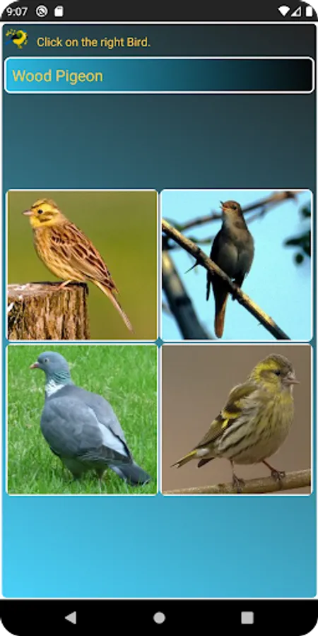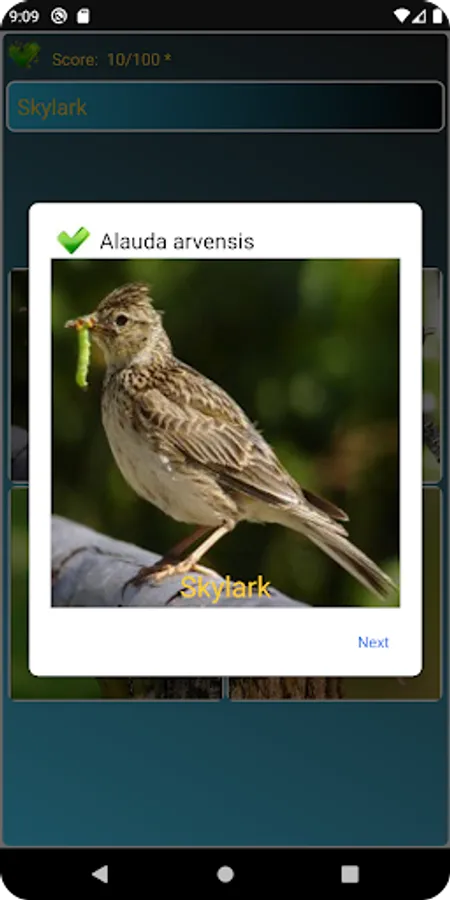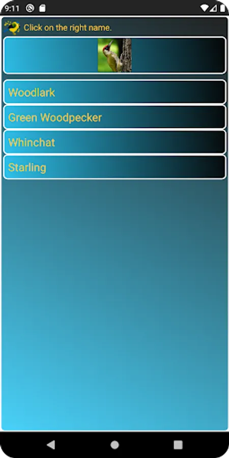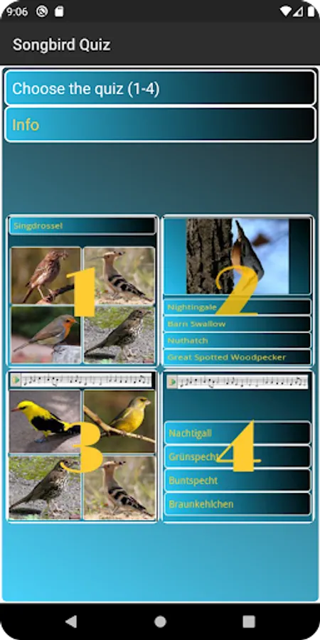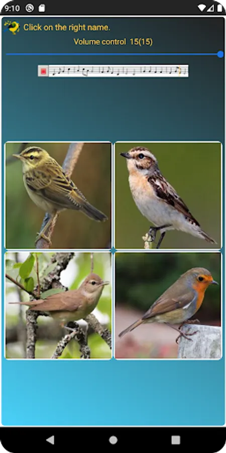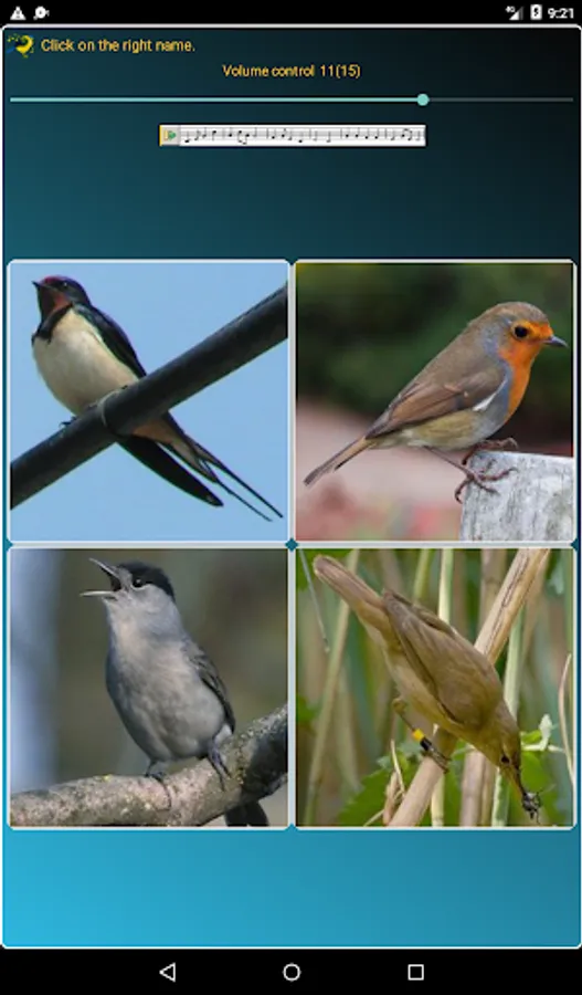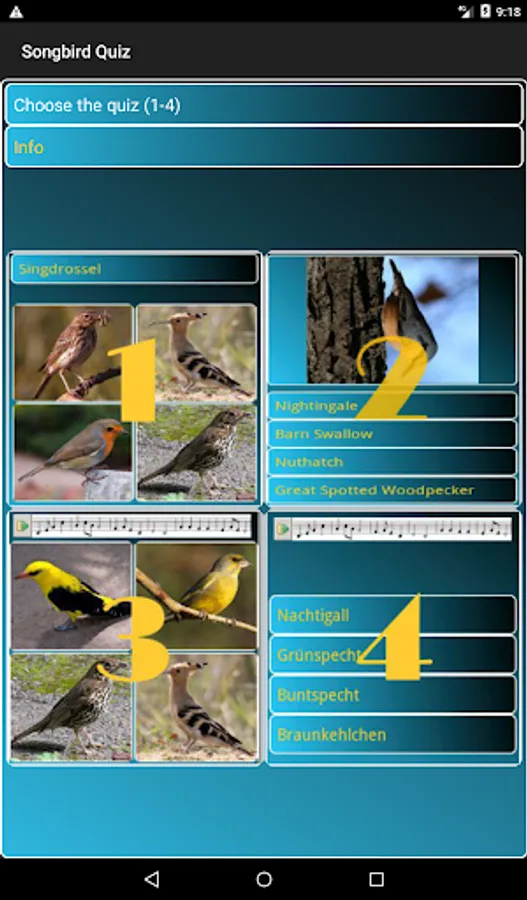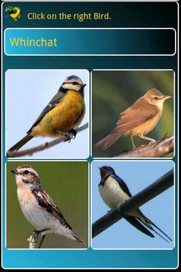 Of 33 different songbirds must be recognized in each round 10th. Are all subject to chance songbird recognized, you get 100 points, and listens to the singing birds of the last correctly choosen bird.