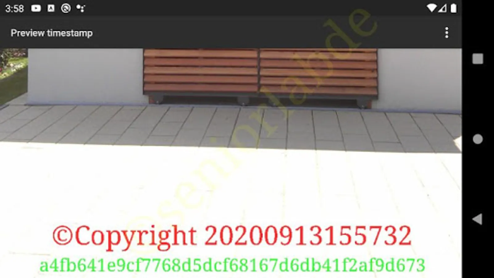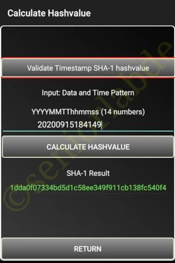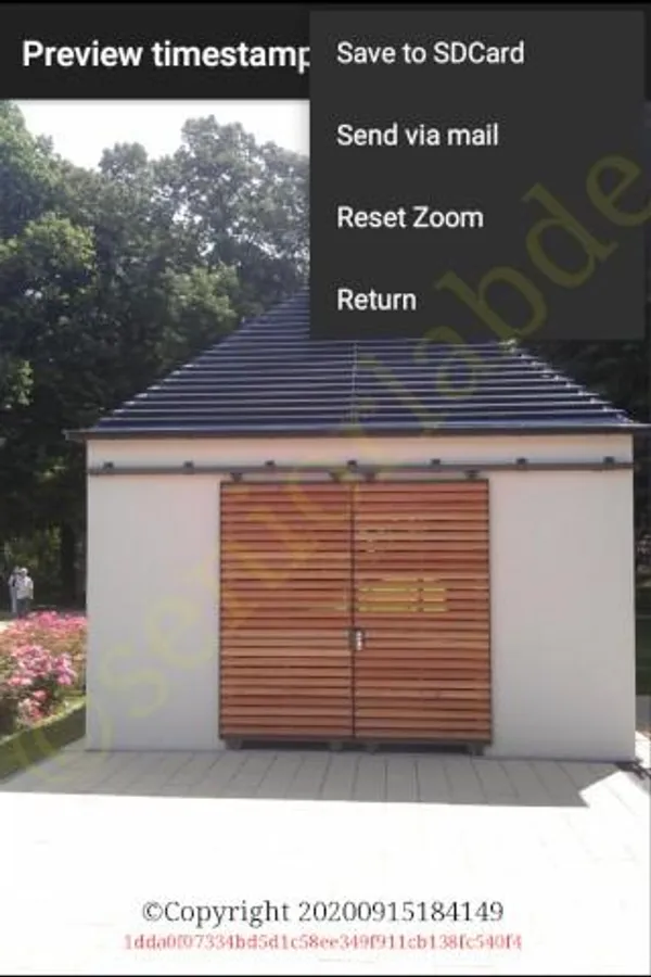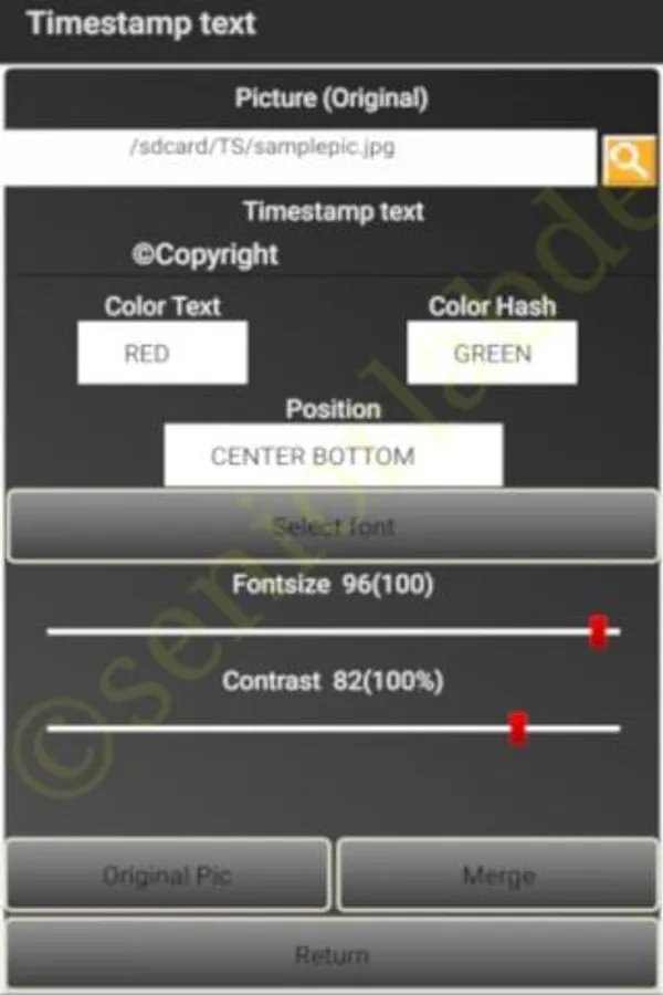 Copyright: Protect your images by a time stamp. In addition you can add to the description of the picture a short text (max. 20 characters). Text and timestamps are inserted into selectable font and font size. Either at the top or at the bottom of the image. From the time stamp a graphical crypto hash code according to the Standard SHA-1 generated. Thus, it is not possible to manipulate the time stamp. (Counterfeit security). If the date or time to be manipulated, the hash value is no longer correct, what you can check with the validation function "Compute hash". The contrast of the inserted text, the time stamp and the hash code can be changed (watermark). The color for text and time stamp and the hash value can be selected separately.