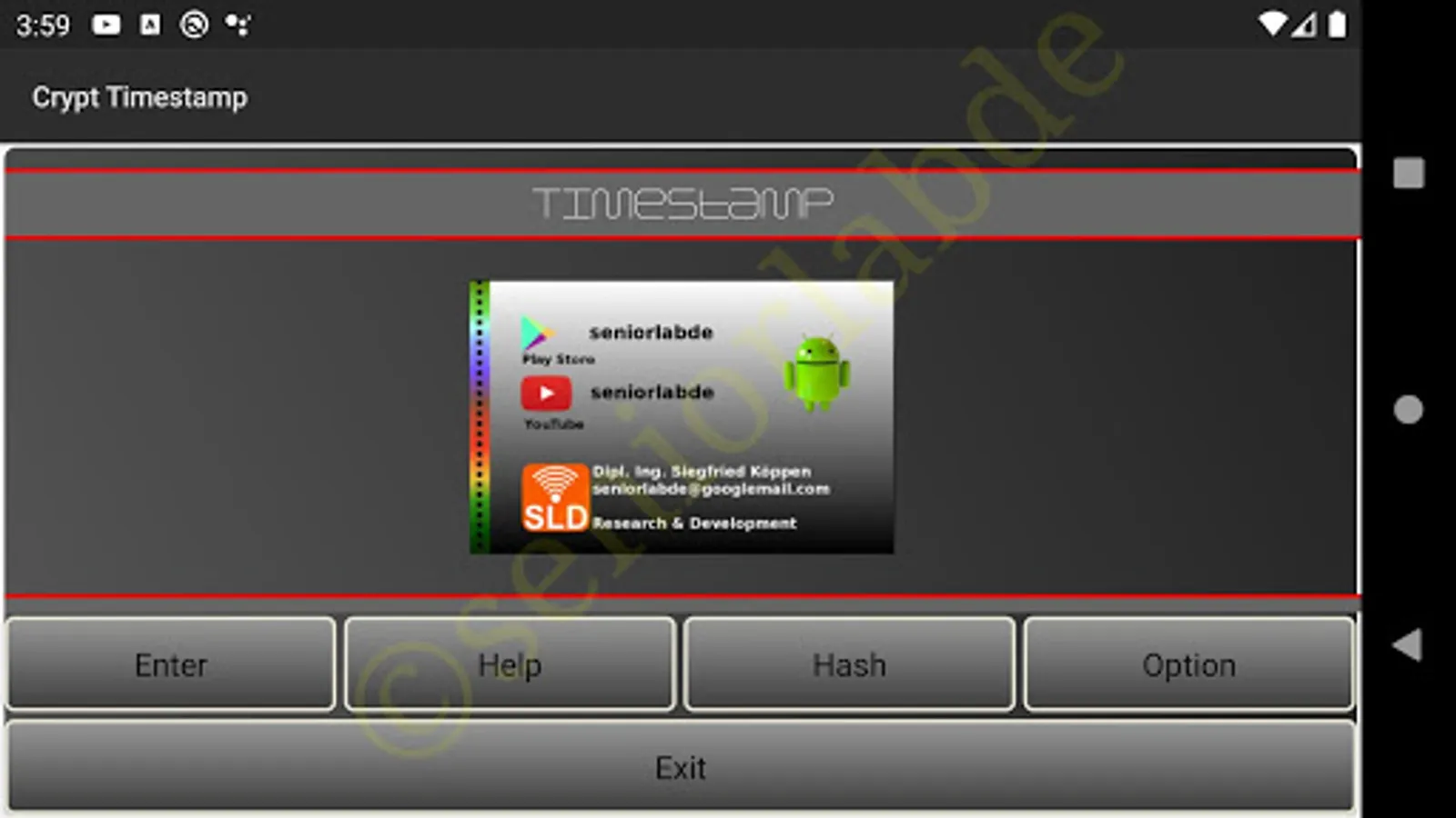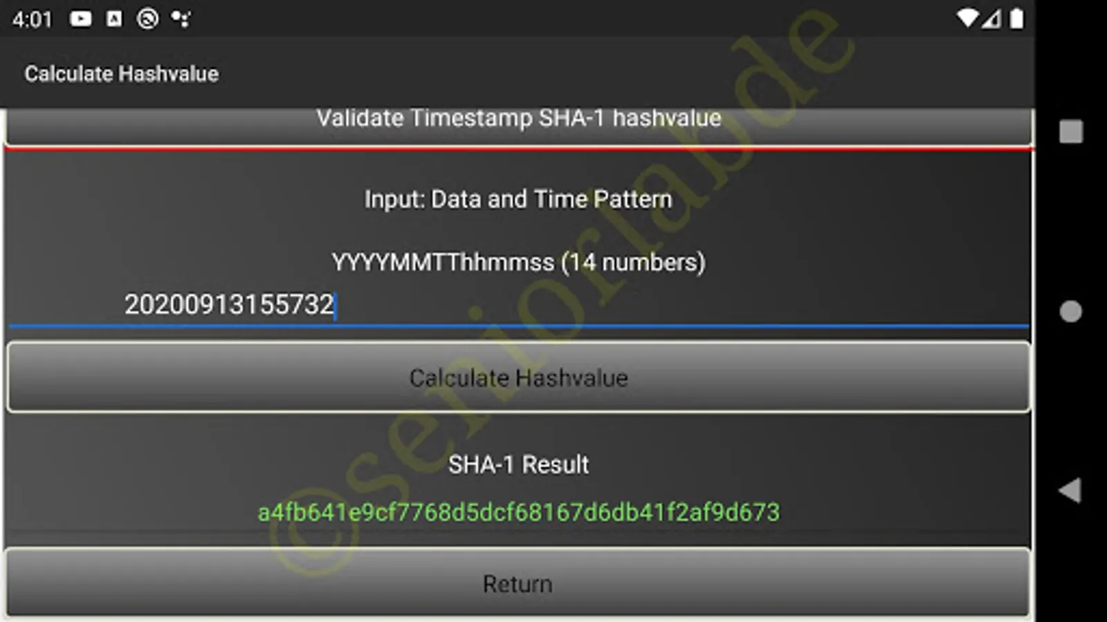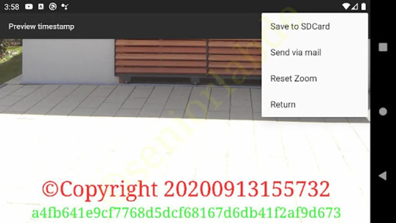 Copyright: Protect your images by a time stamp. In addition you can add to the description of the picture a short text (max. 20 characters). Text and timestamps are inserted into selectable font and font size. Either at the top or at the bottom of the image. From the time stamp a graphical crypto hash code according to the Standard SHA-1 generated. Thus, it is not possible to manipulate the time stamp. (Counterfeit security). If the date or time to be manipulated, the hash value is no longer correct, what you can check with the validation function "Compute hash". The contrast of the inserted text, the time stamp and the hash code can be changed (watermark). The color for text and time stamp and the hash value can be selected separately.
