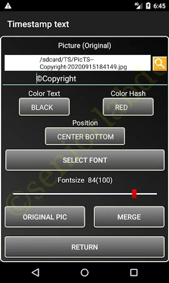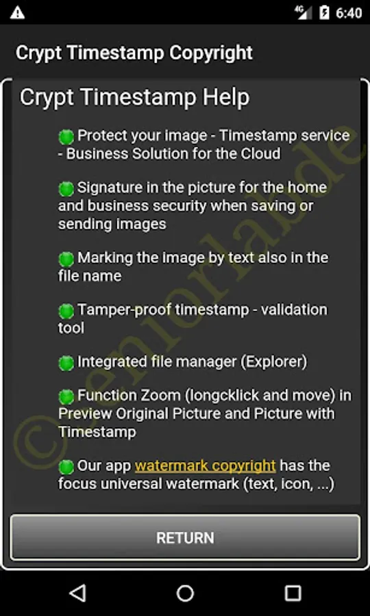Our app watermark copyright has the focus universal watermark (text, icon, ...)