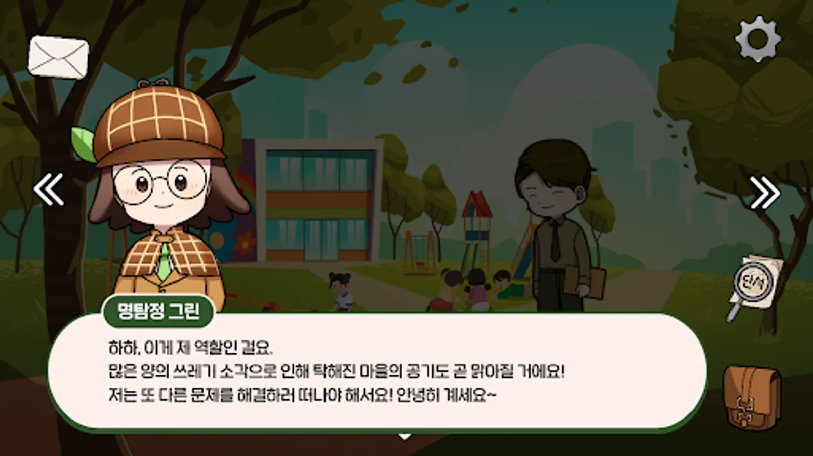 'Detective Green, Protect the Earth!' is a game that protects the clean Earth by solving environmental pollution around the world with the main character, Detective Green!