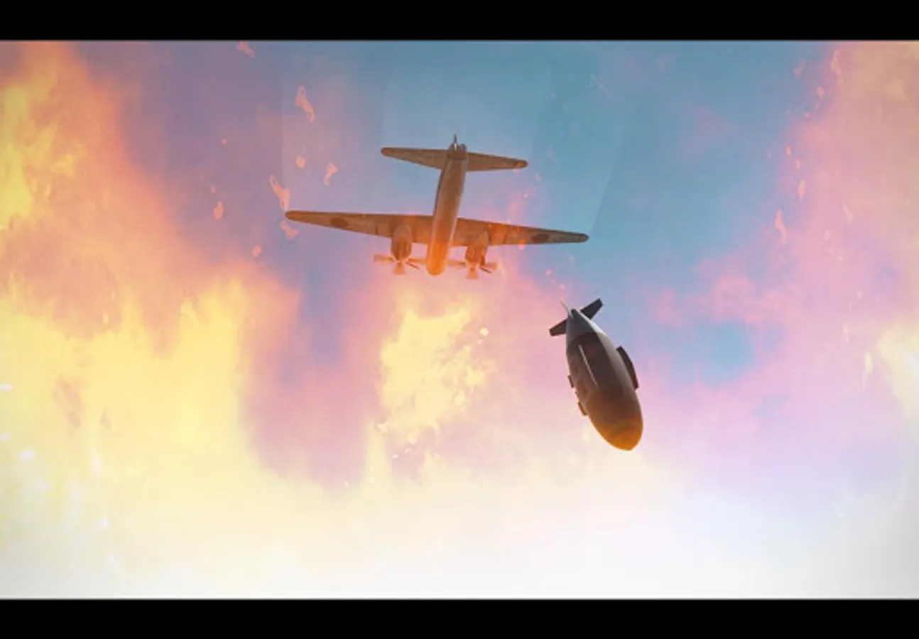 Fly on steep planes on a complex urban area and destroy high-rises.