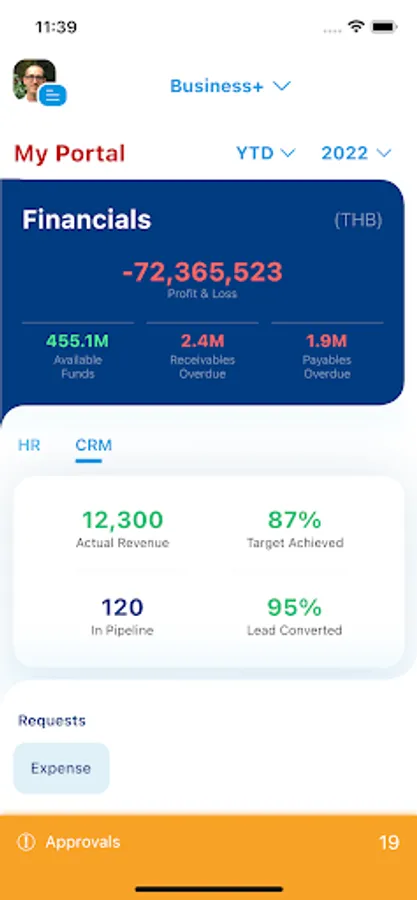 My portal: Users can see all their company performance, activities, requests and, all actions required to be taken in one place and easily track each department's performance.