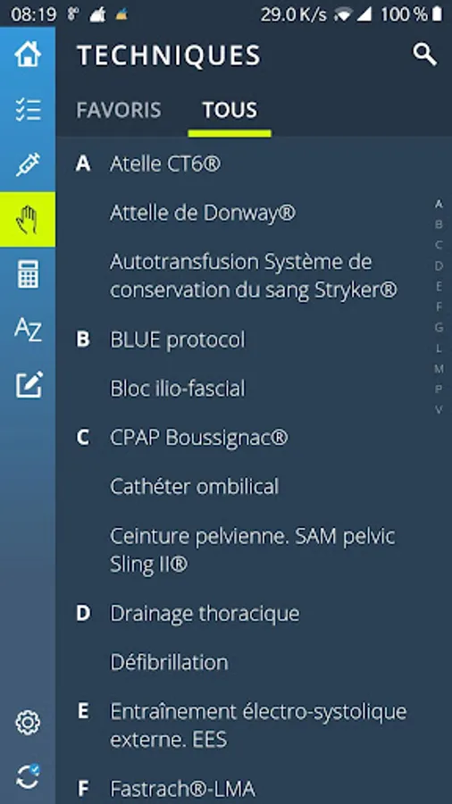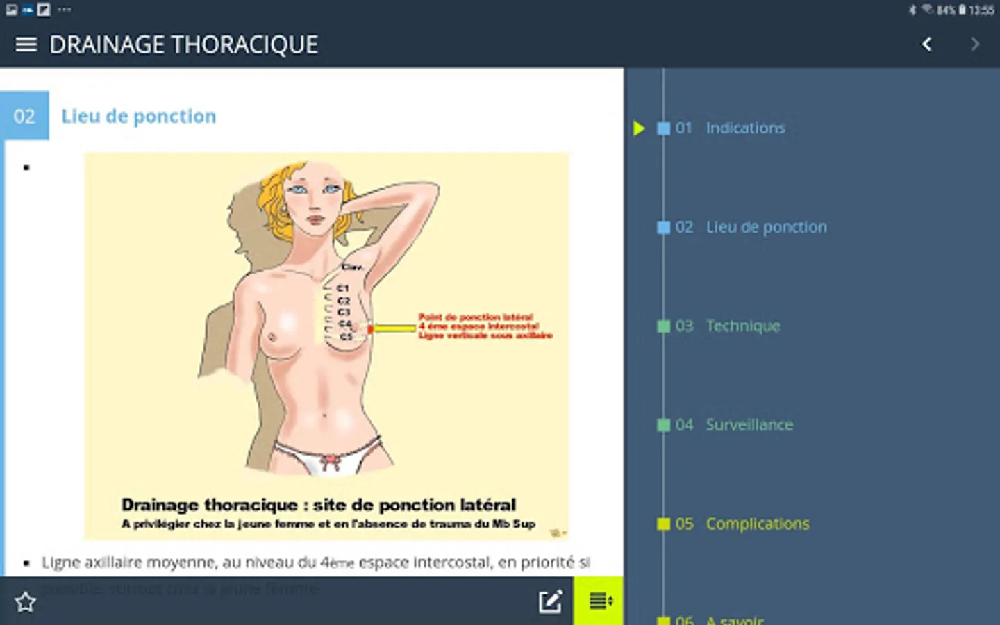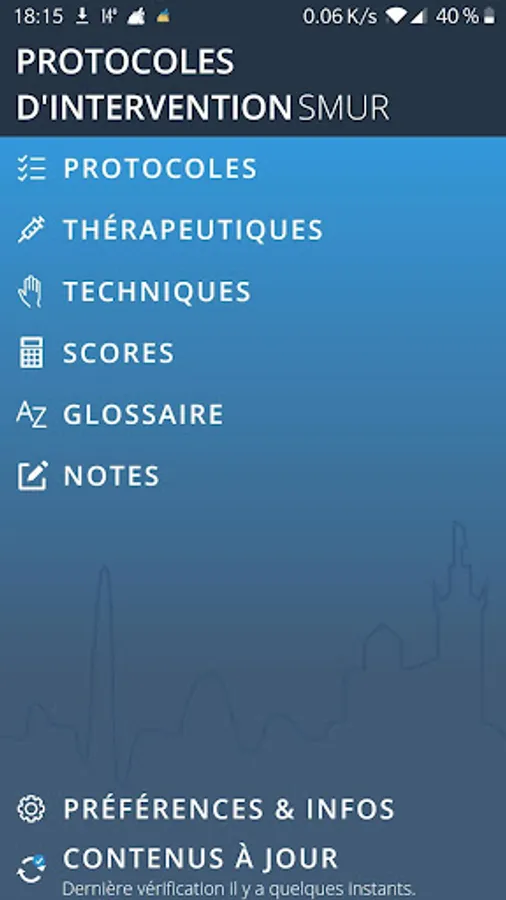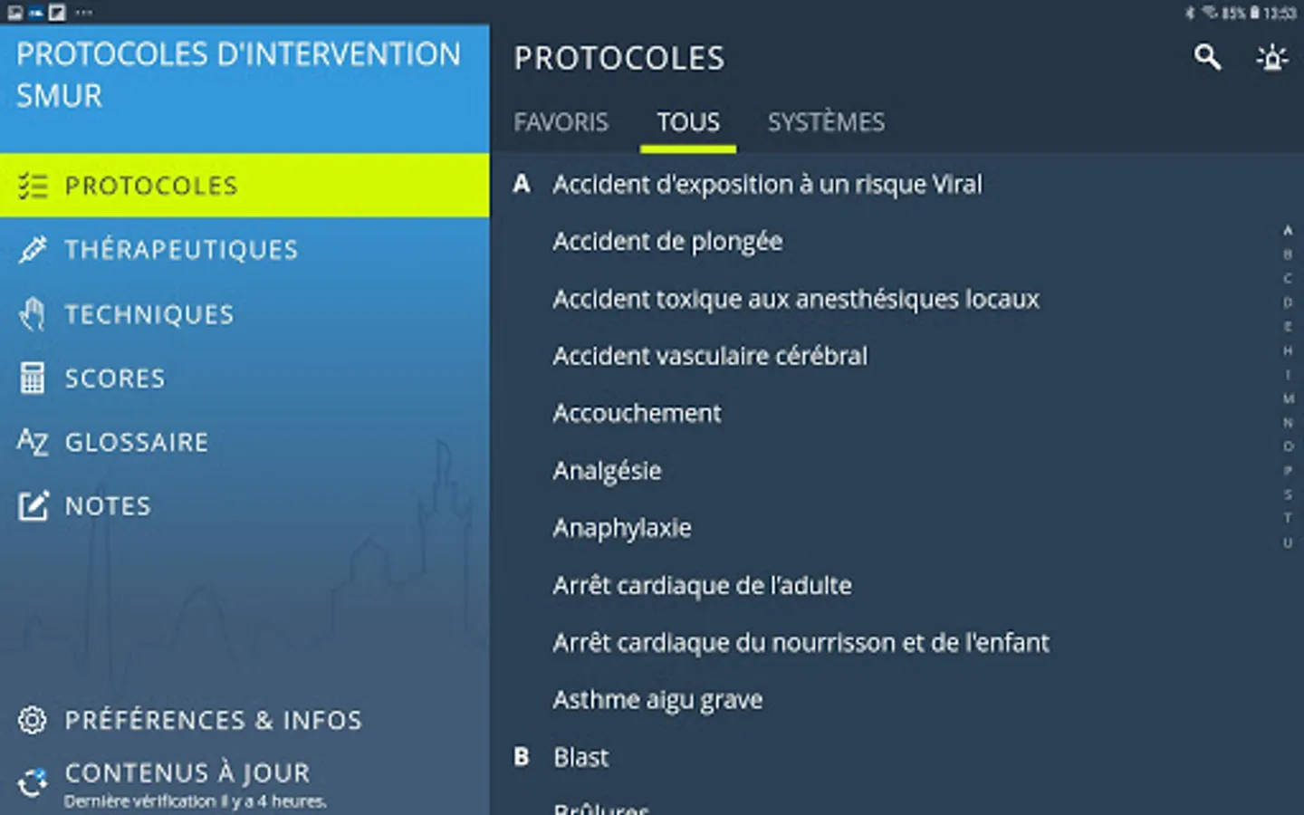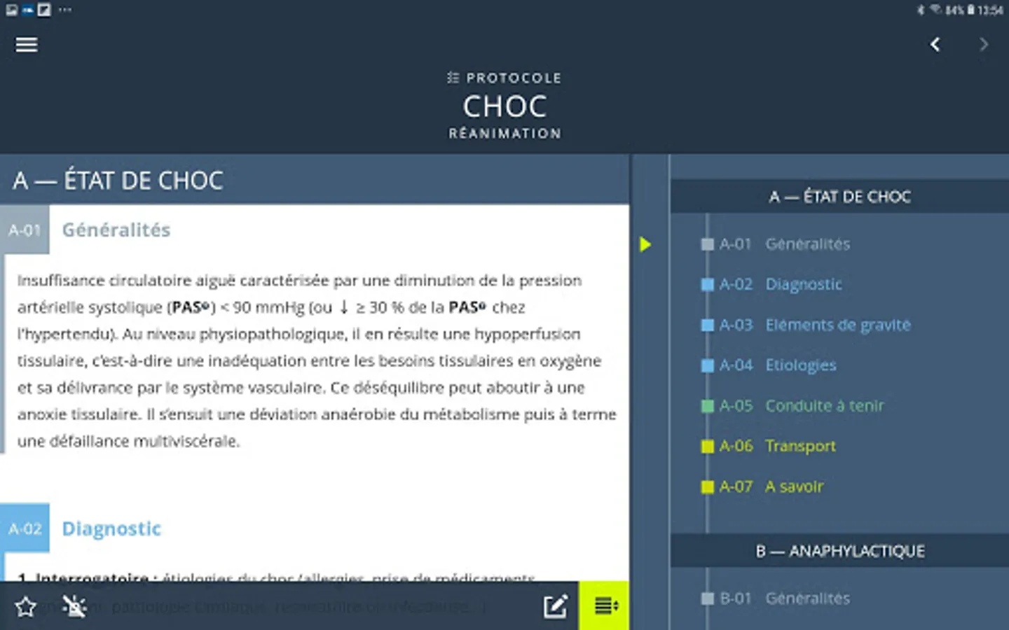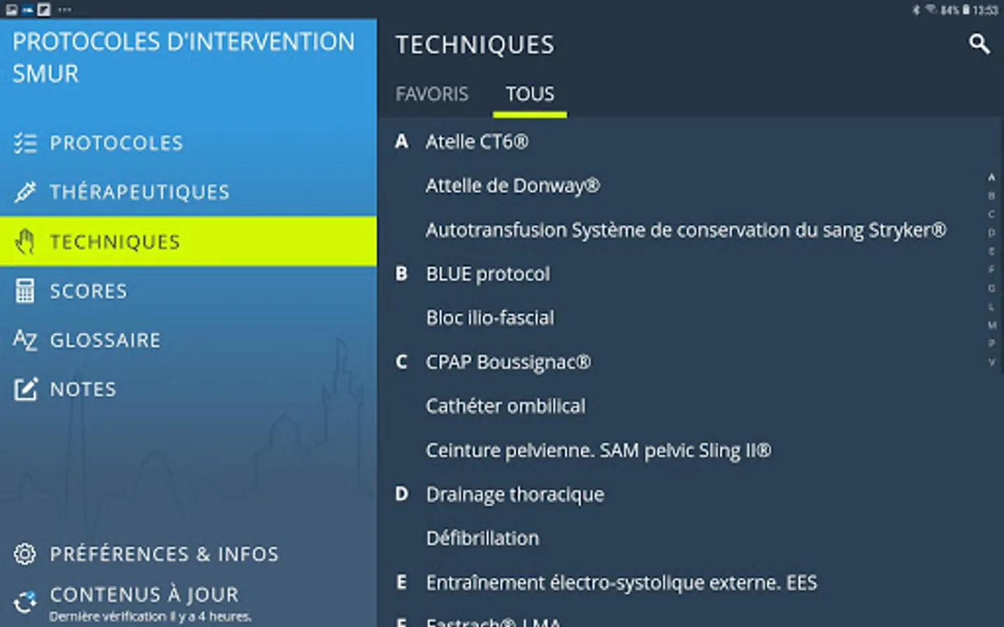 This application offers more than a hundred medical protocols or technical sheets and more than 80 treatment sheets, intended for the care of patients in prehospital settings.