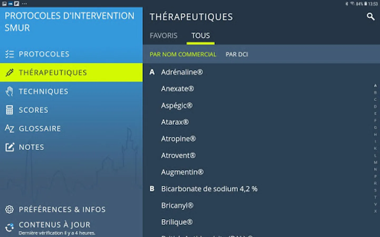 The "SMUR intervention protocols" application was produced using up-to-date data from science and the experience of doctors from the Health Service / SMUR of the Marseille Fire Brigade Battalion.