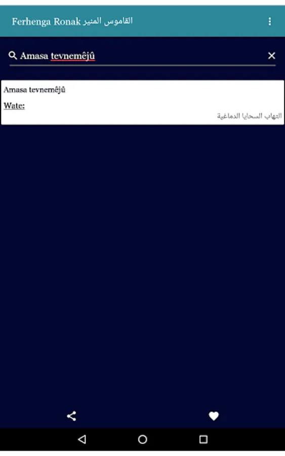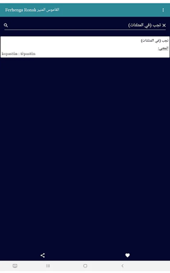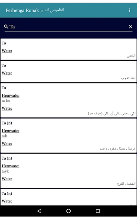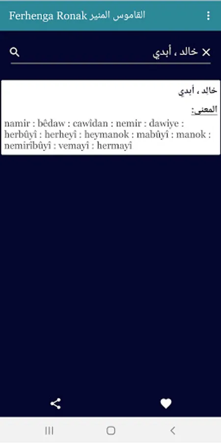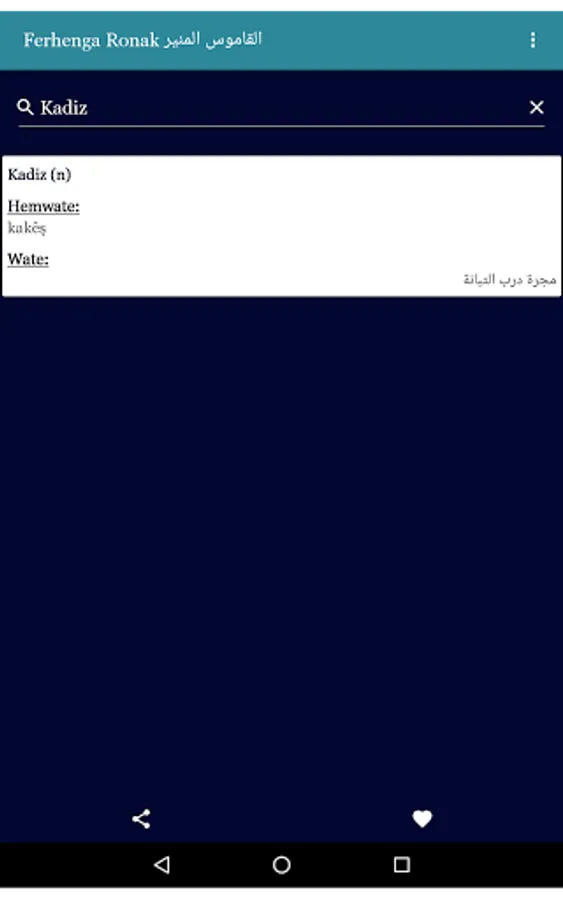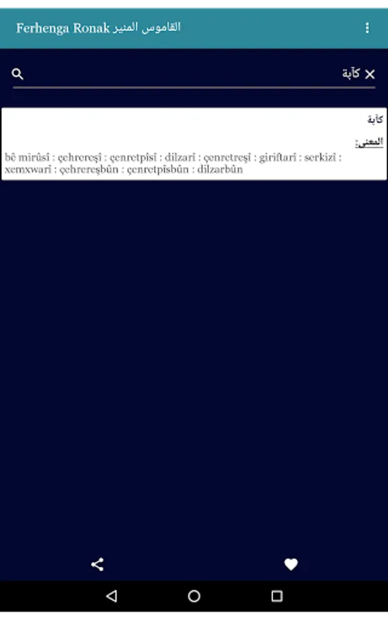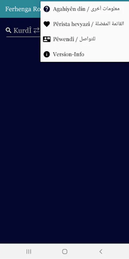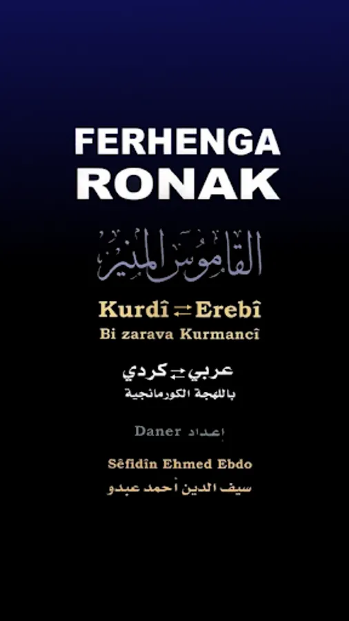 This application is not the product of an individual work, not just a collection of words within an application, but a book printed in the glossy dictionary of Saifuddin Abdo (Shourazad), which in turn has been based on many sources and sought for himself through his contacts between both Kurdish communities And Arab, thanks to his efforts. In my turn, I introduced it as an application to be easier to use and more useful to you.