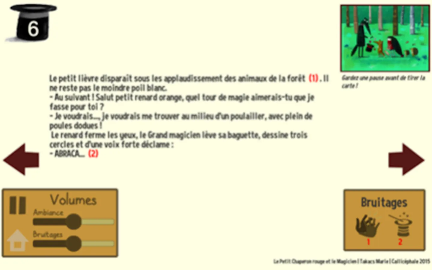 The application contains the sound environment of the Kamishibai: Little Red Riding Hood and the Magician.
