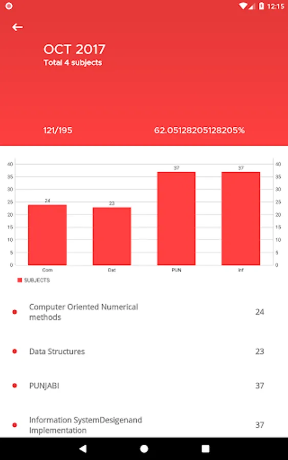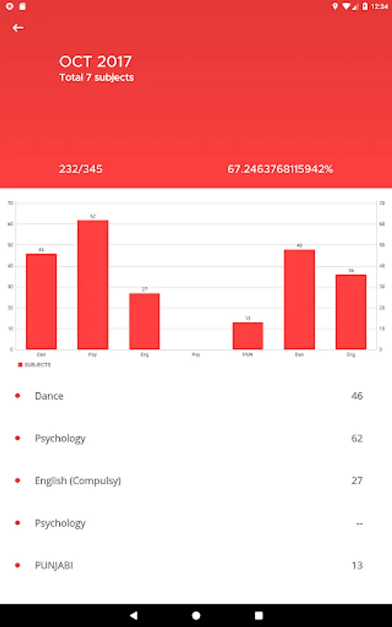 7. Attendance details of each subject.