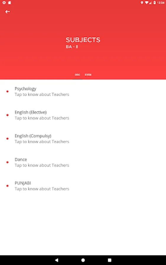 5. List of teachers as per the subject assigned.