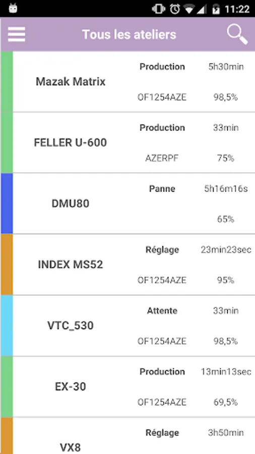 - The list of your machines and their current states