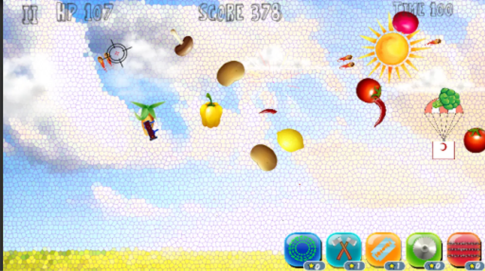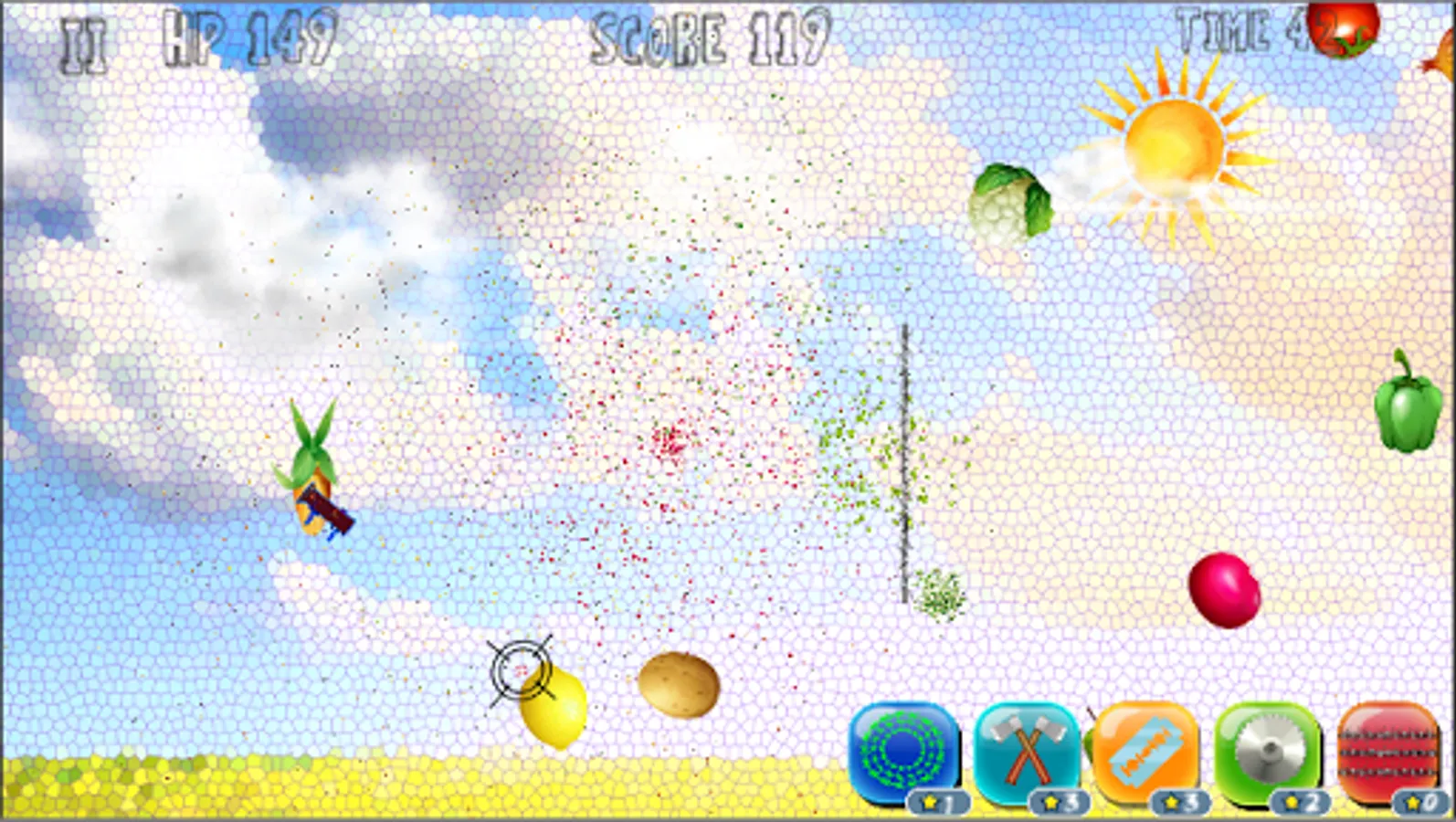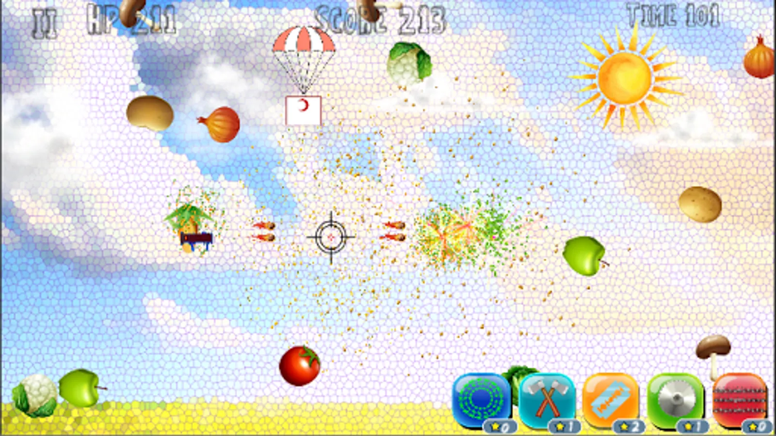 Defend the field! The cornfield is attacked by crazy vegetables. You have to survive the onslaught of crazy vegetables.