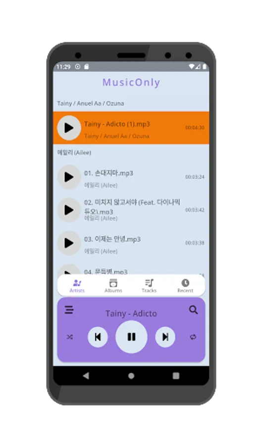 we you use this design to make it easy to use with one hand to be save to use it while driving and keep focus on the road because our app doesn't need any attention to find music you love because all in front of you.