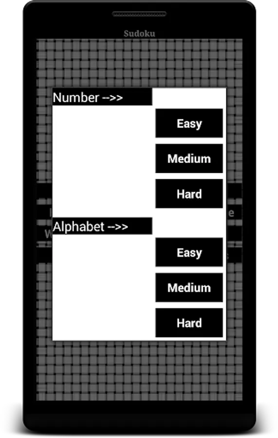 The game two types Number and Alphabet. It has three difficulty levels, easy, medium and hard.