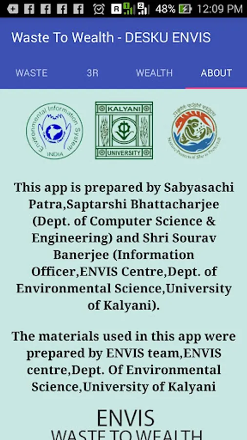 The materials used in this apps were prepared by ENVIS Team, ENVIS Centre, Dept. of Environmental Science, University of Kalyani.