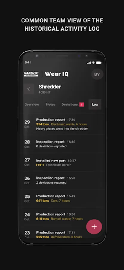 - Keep track of installed wear parts and historical activities in your equipment