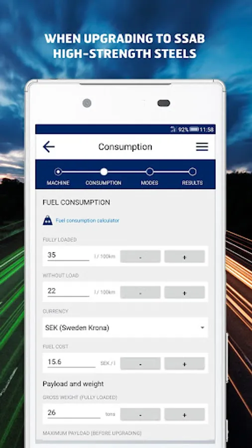 The SSAB EcoUpgraded concept saves CO2 both in steel production and during the full lifetime of the end product. With the SSAB EcoUpgraded app, you can calculate how much the upgrading to high-strength steels reduces the weight of equipment, improves fuel economy and increases product lifetime – all of which reduce the carbon footprint.