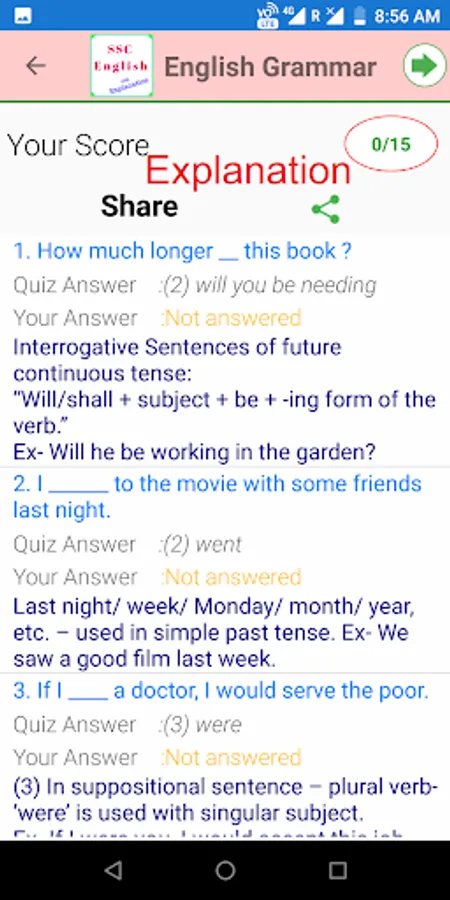 हमारे इस SSC English Grammar app में आपको “Spotting error”, “sentence improvement”, and “fill in the blanks” का quiz मिलेगा with explanation जिसमे English grammar के almost उन सारे rules को explain किया गया है जिस पर based question SSC के exam में पूछे जाते हैं .