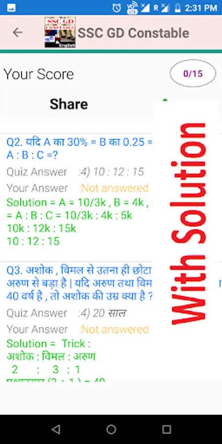 This SSC GD Constable app contains Questions in hindi as well as in english.