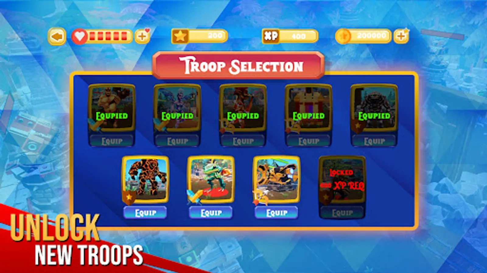 ★ Continuous addition of new troops, each with their own set of abilities, increased health, and more powerful attacks.