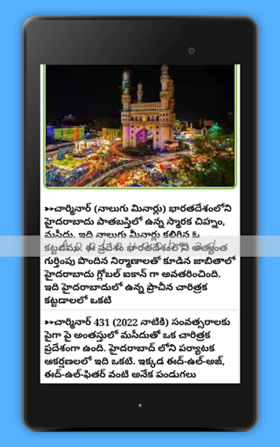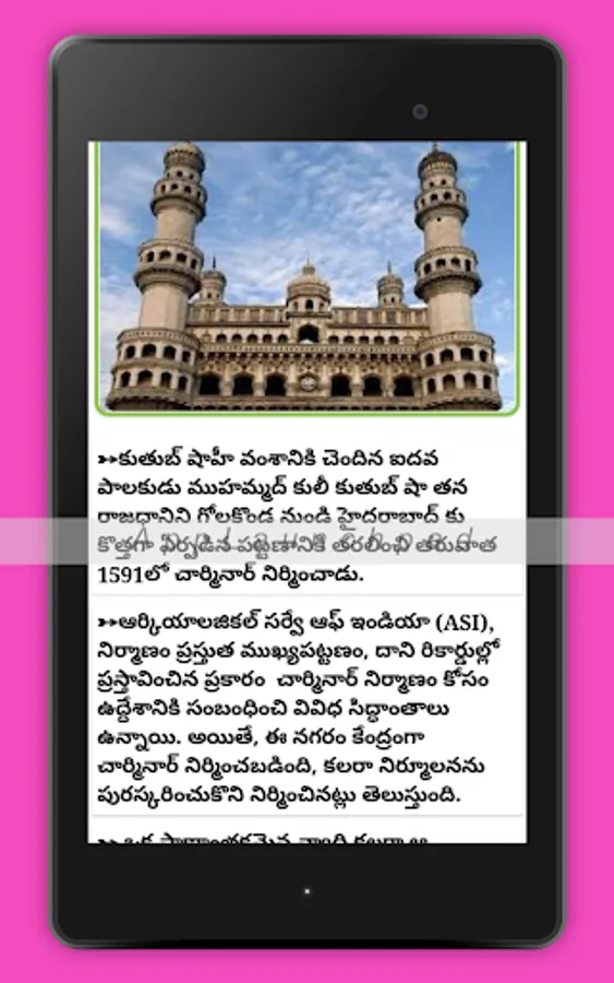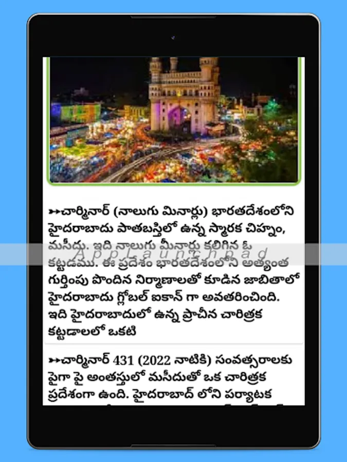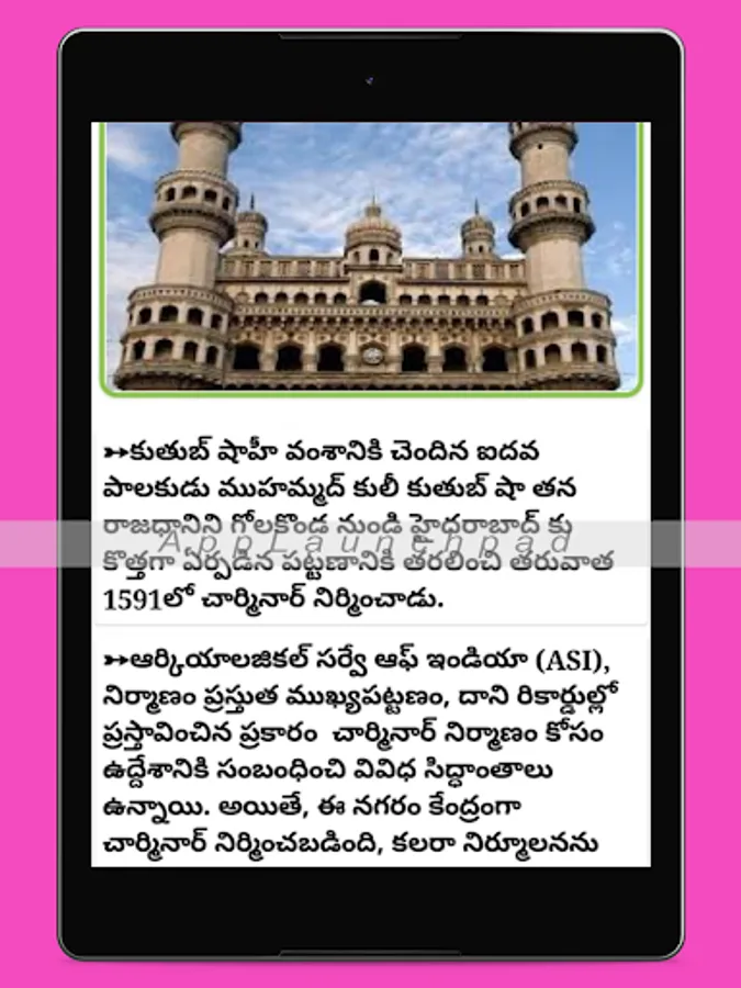This app provides the detailed information about Charminar history info.