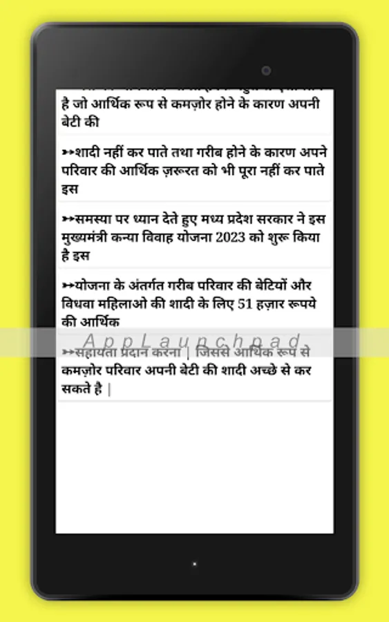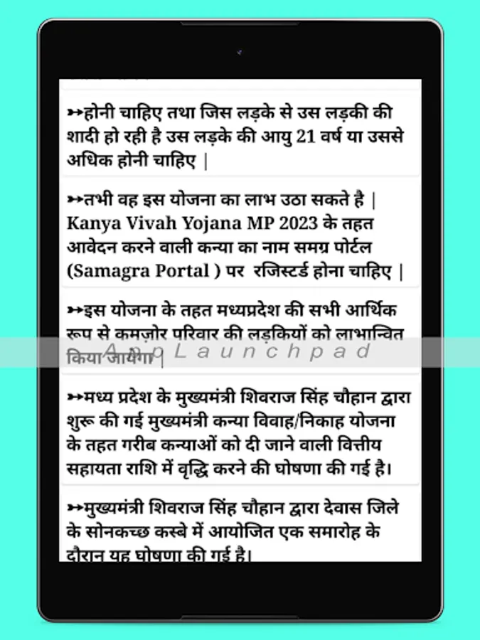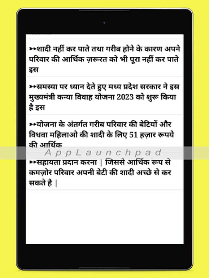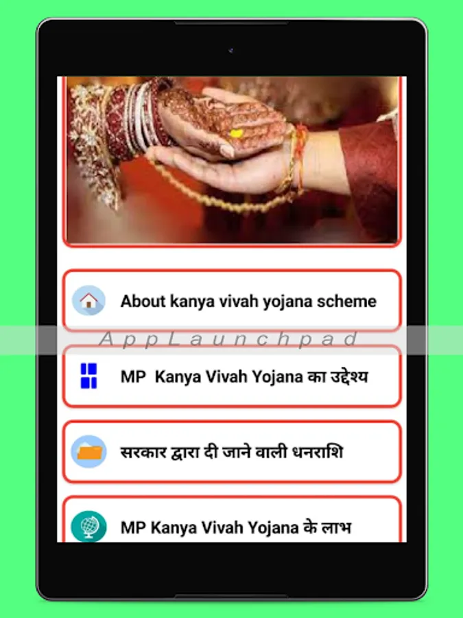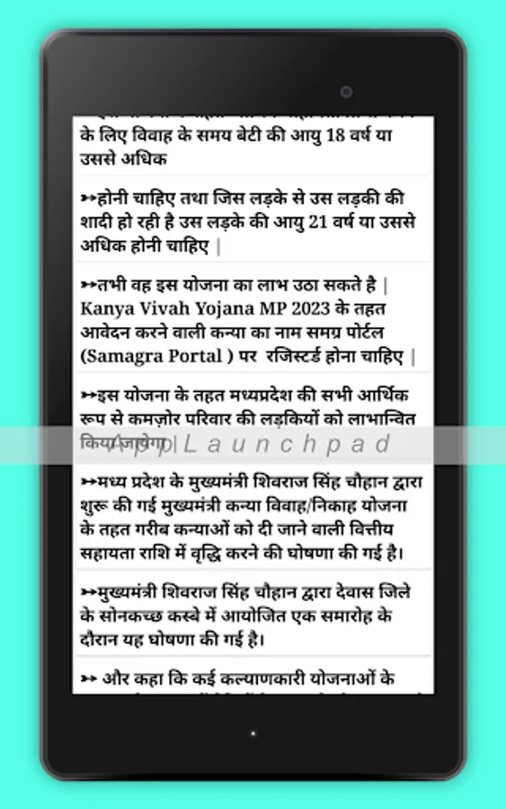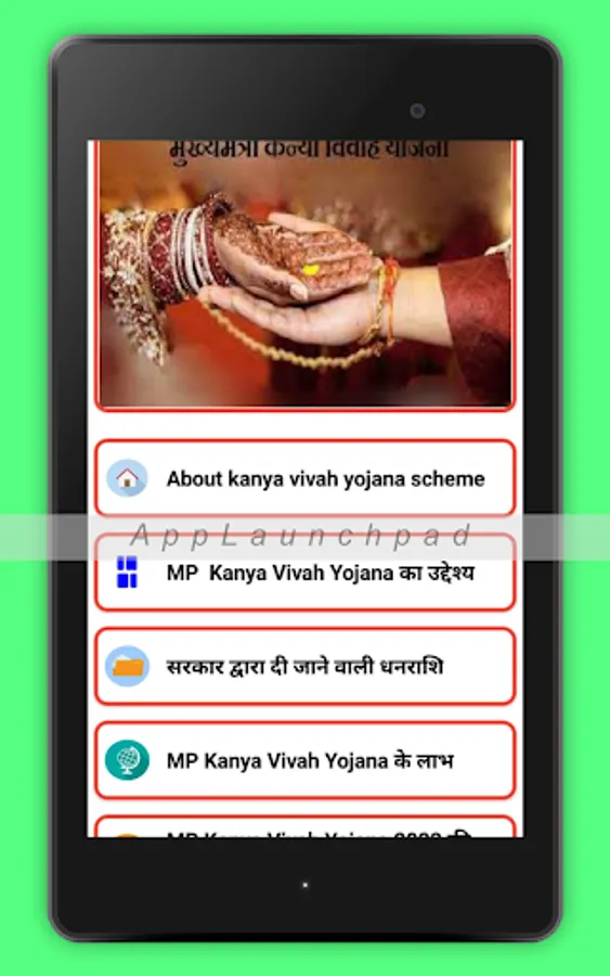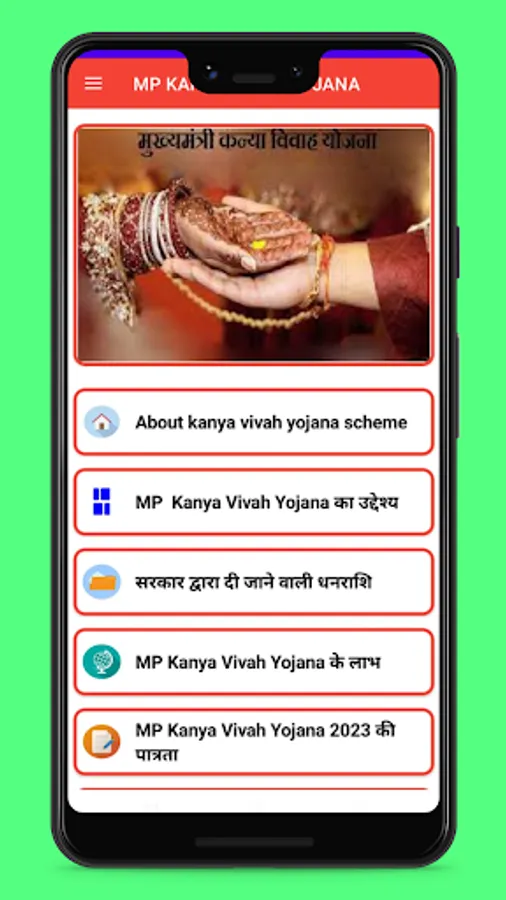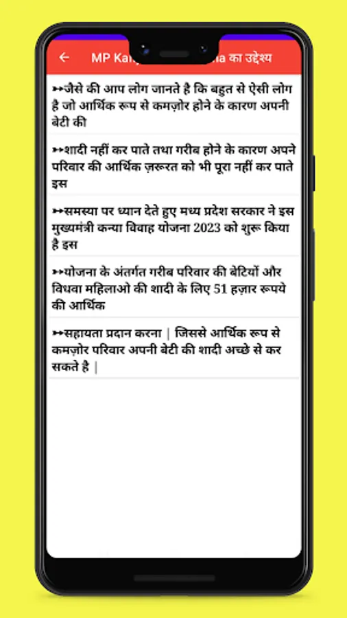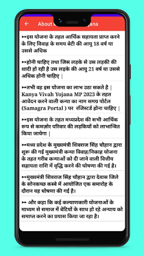 This app provides the detailed information about Kanya Vivah Yojana info in MP.