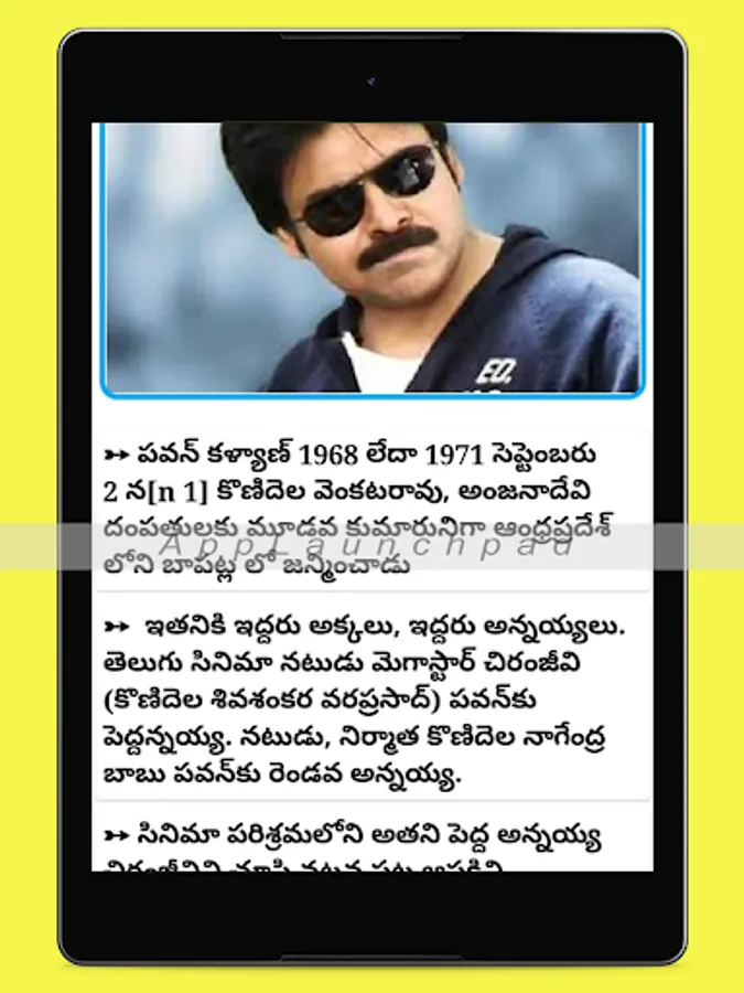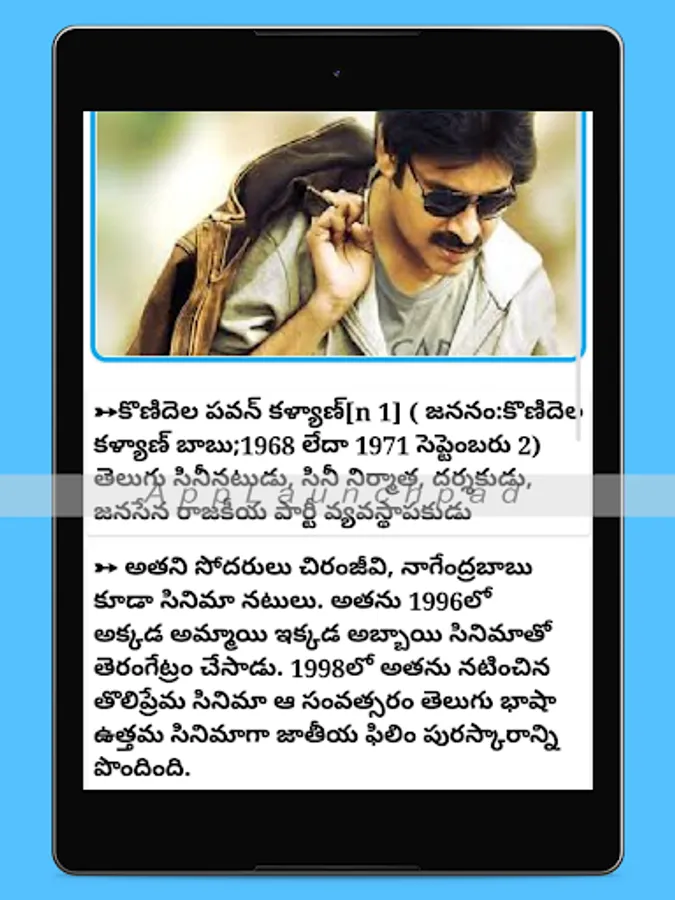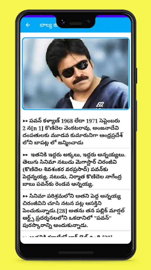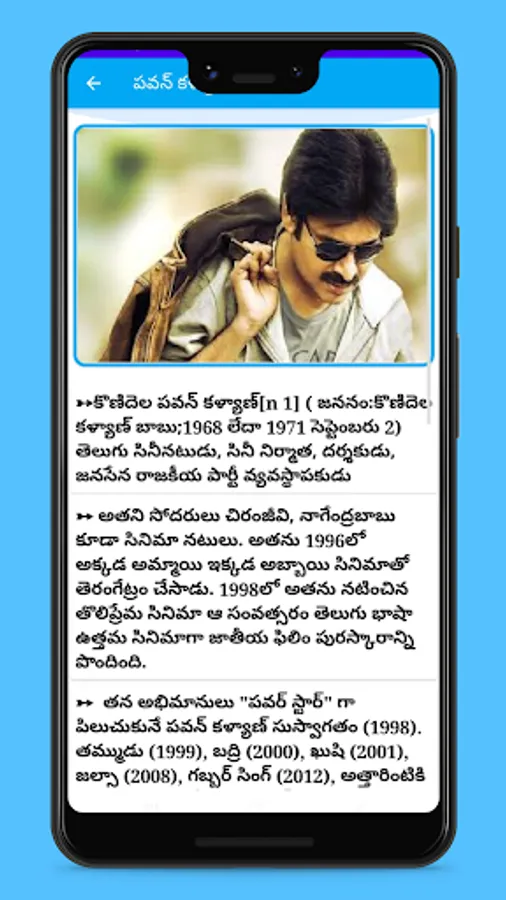 This app provides the detailed information about Powerstar Pawan Kalyan Lifestory info.