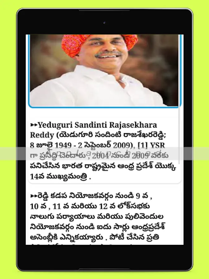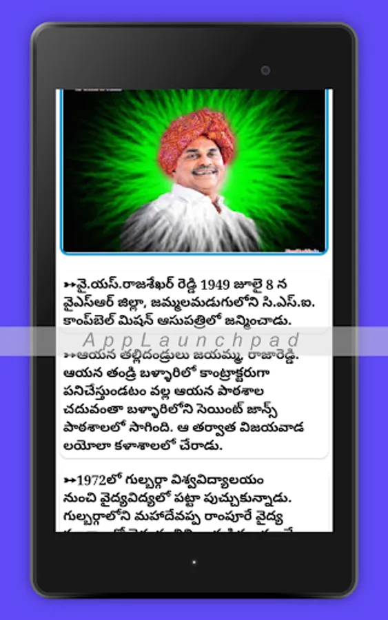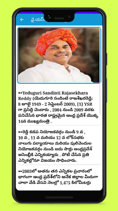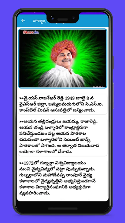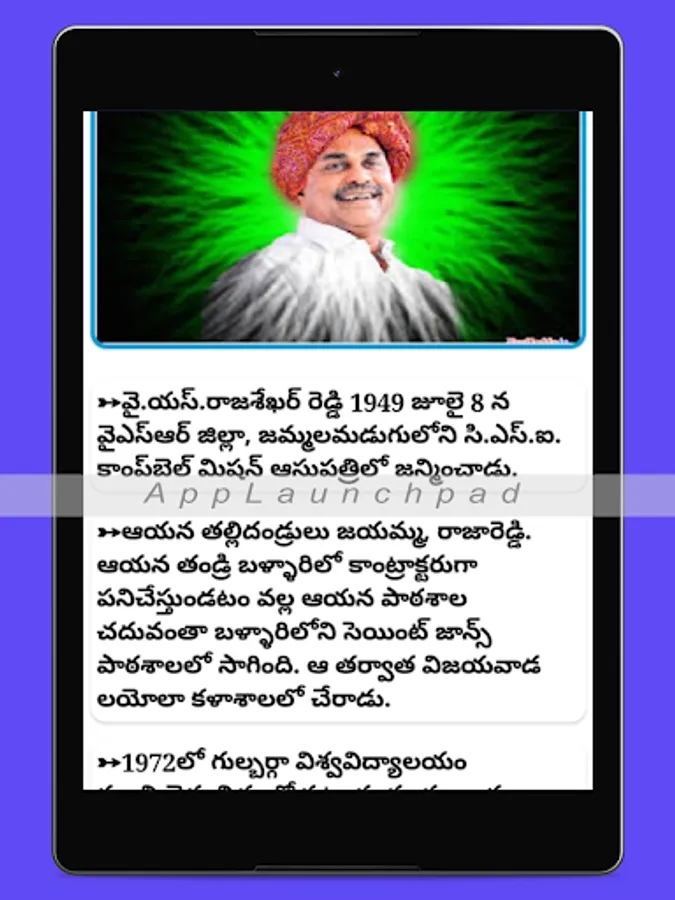 This app provides the detailed information about YS Rajasekhar Reddy Biography.