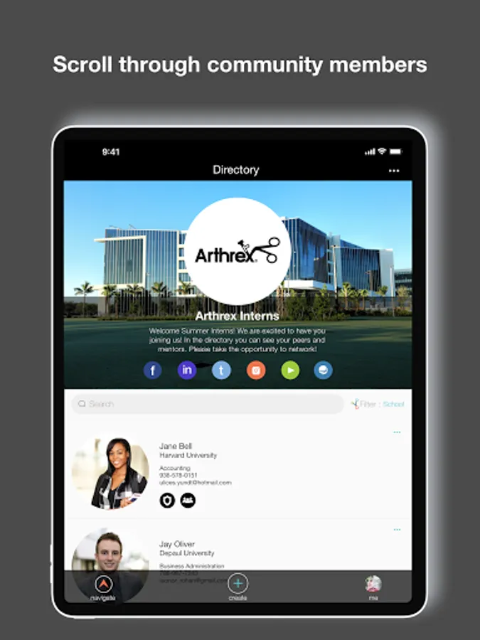 The Arthrex Intern App helps members tap into their program’s community. Network with other interns, mentors, and administrators. Stay connected to the events and the community in your Internship location.