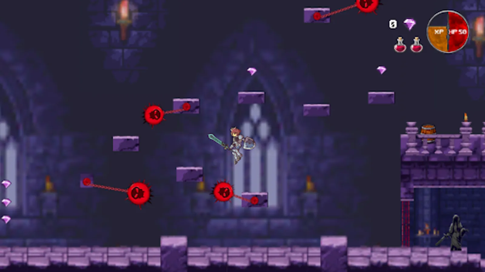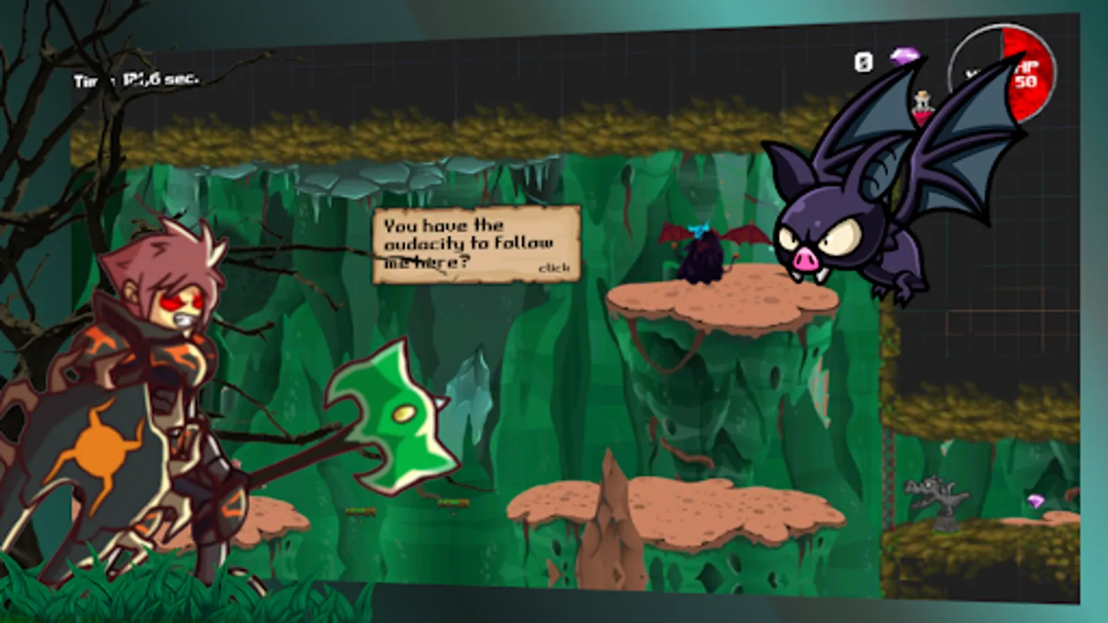 The interface is user-friendly with the option to switch the controls between a button or joystick like controls. The controls of the game are easy to use just jump and run and kill the creatures with the help of a sword. There are different types of environments in the different levels like a cave or jungle. Collect jewels and buy equipment and weapons. After completing all challenges, you get the jewel of the king as a reward at the end of the game.