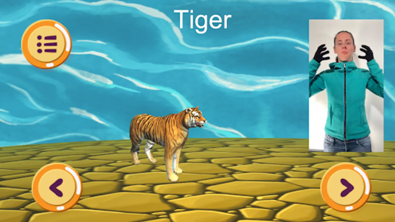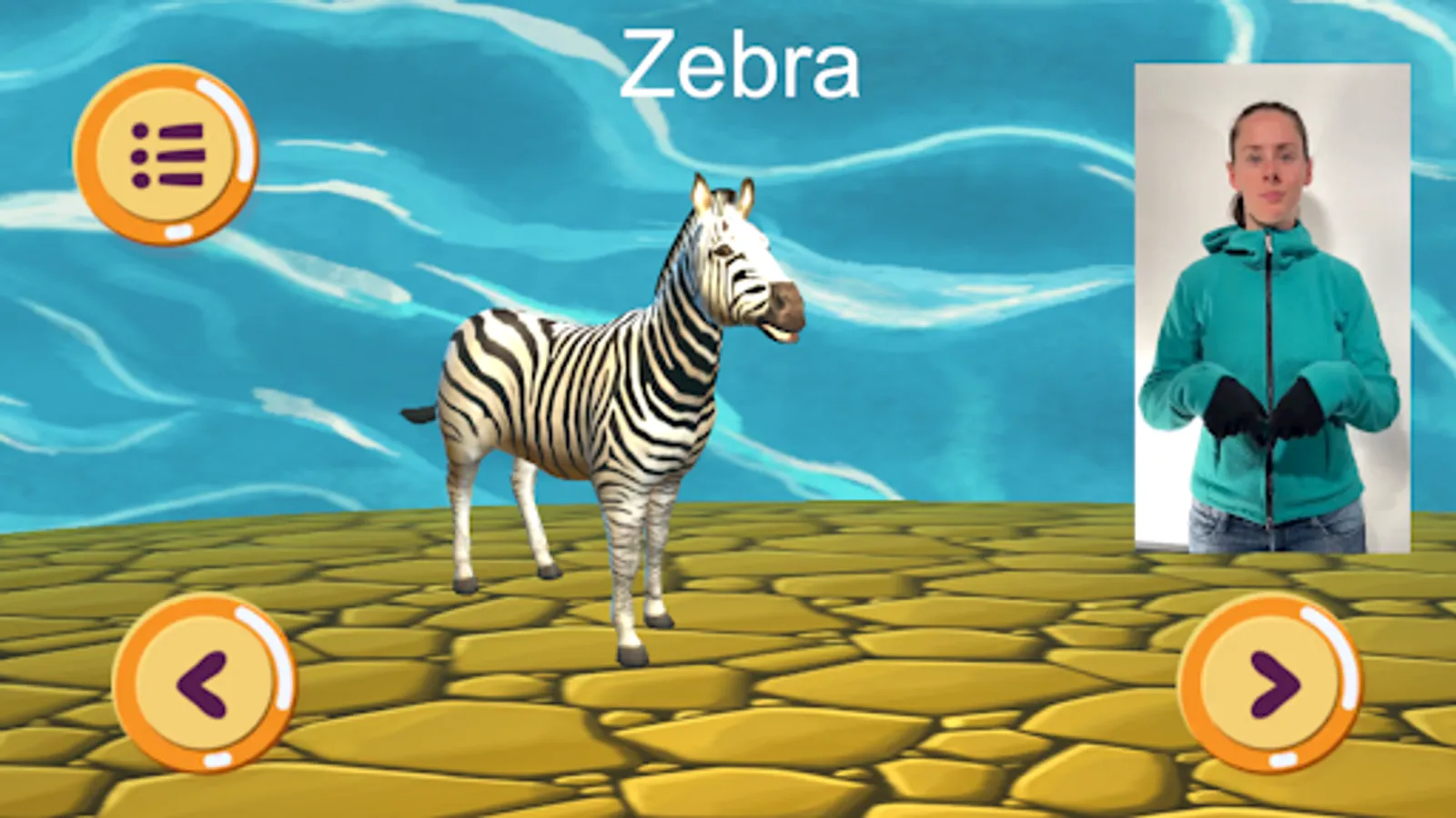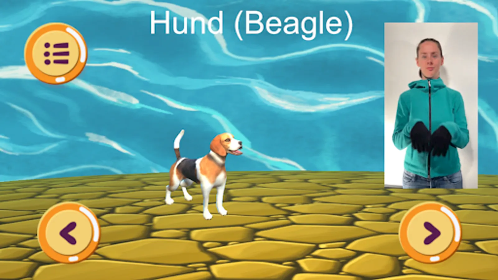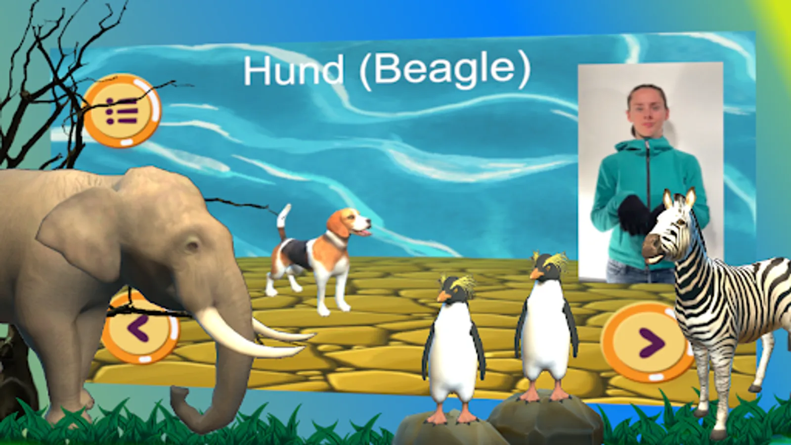 In this app you will find 20 lovingly animated farm and zoo animals with the associated characters, which come from German sign language, as well as another 27 breeds (e.g. different dogs, horses, etc. currently without sign language videos). Here you can playfully learn the signs together with your child.
